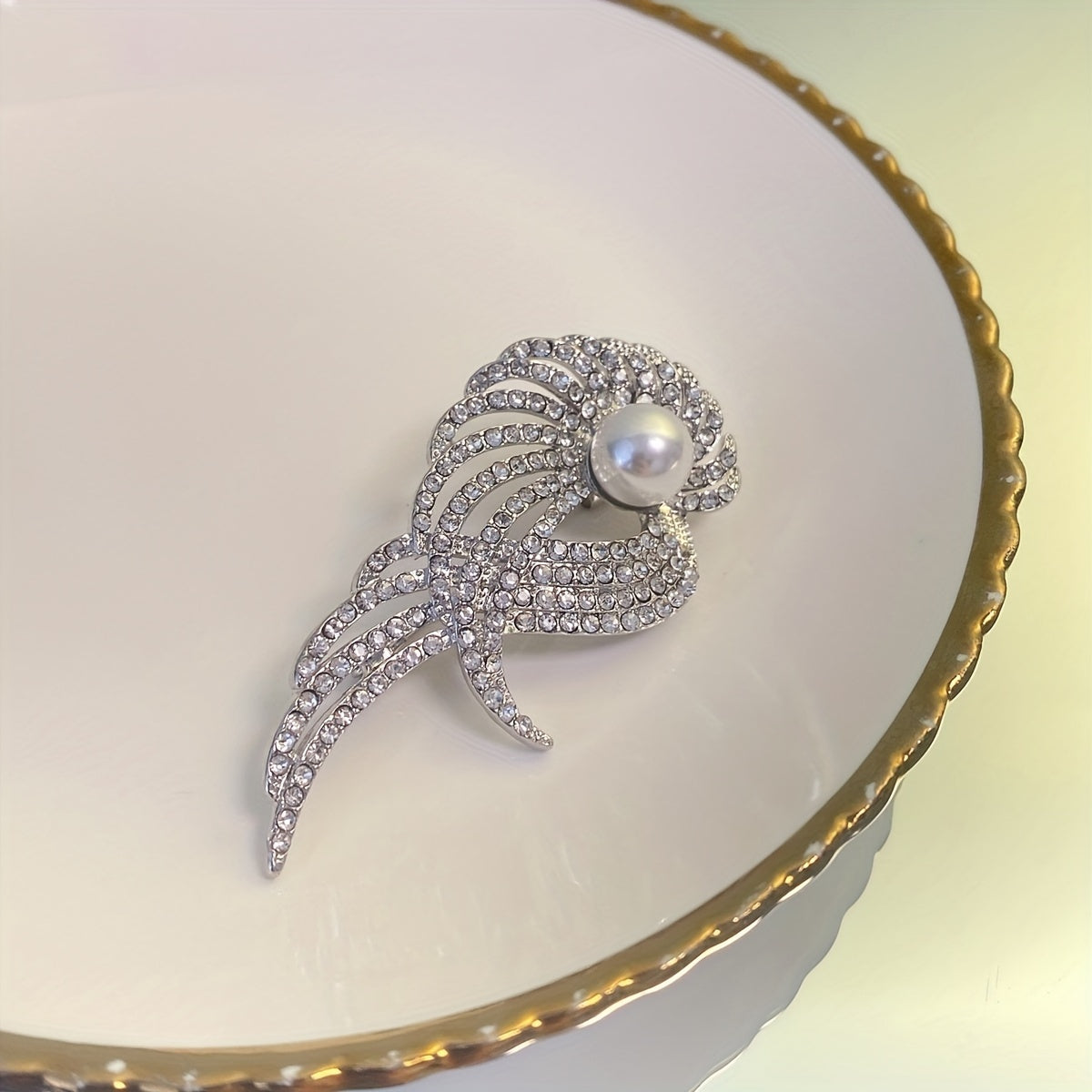 Add a touch of elegance with this beautiful freshwater pearl and rhinestone wing pin brooch. Perfect for daily wear, it can be used to adorn clothing, hats, and bags.
