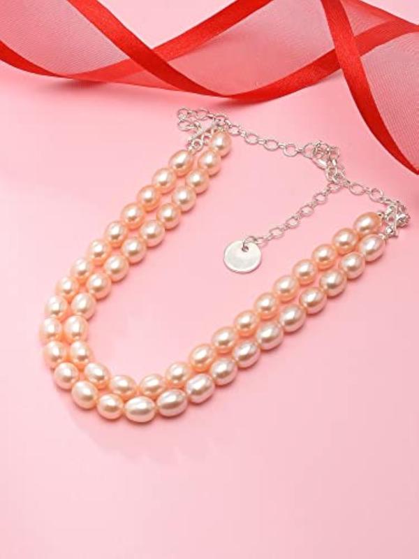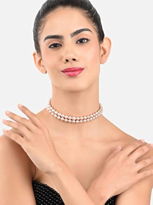 Elegant and classic choker necklace featuring two strands of AAA+ freshwater rice pearls. Perfect for women who appreciate timeless jewelry pieces.