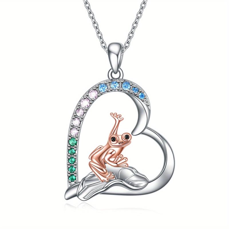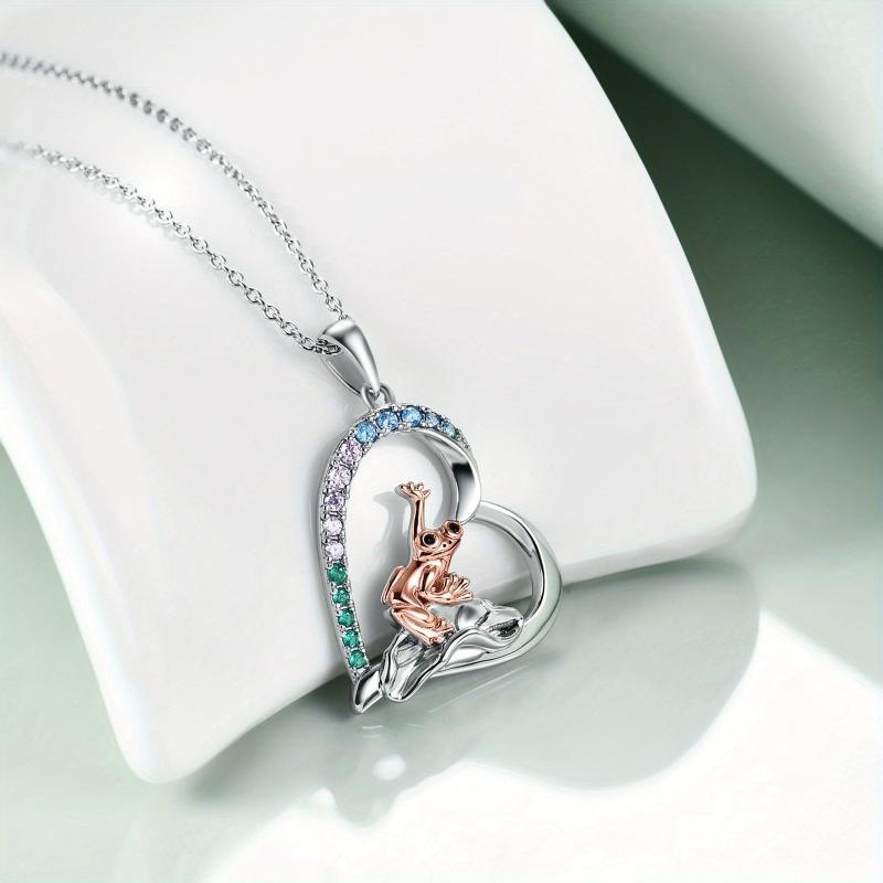 This charming frog necklace is made of sterling silver, featuring an adorable design of a frog sitting on a lotus leaf. A perfect birthday gift for sisters, daughters, women, or girls.