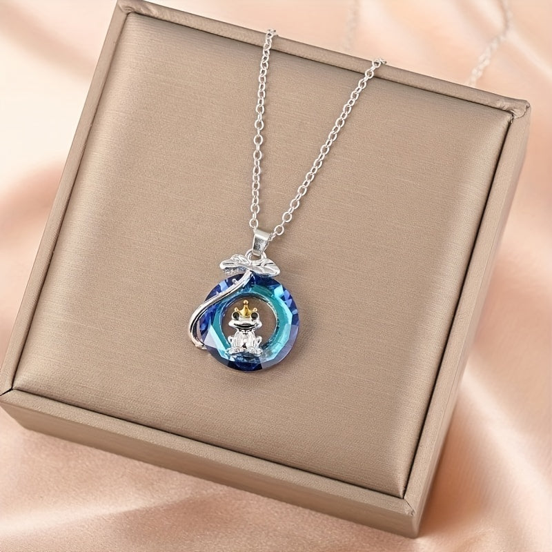 This charming frog pendant necklace features a round crystal, making it a delightful accessory for men and women. It's perfect for birthday parties or as a thoughtful anniversary gift.