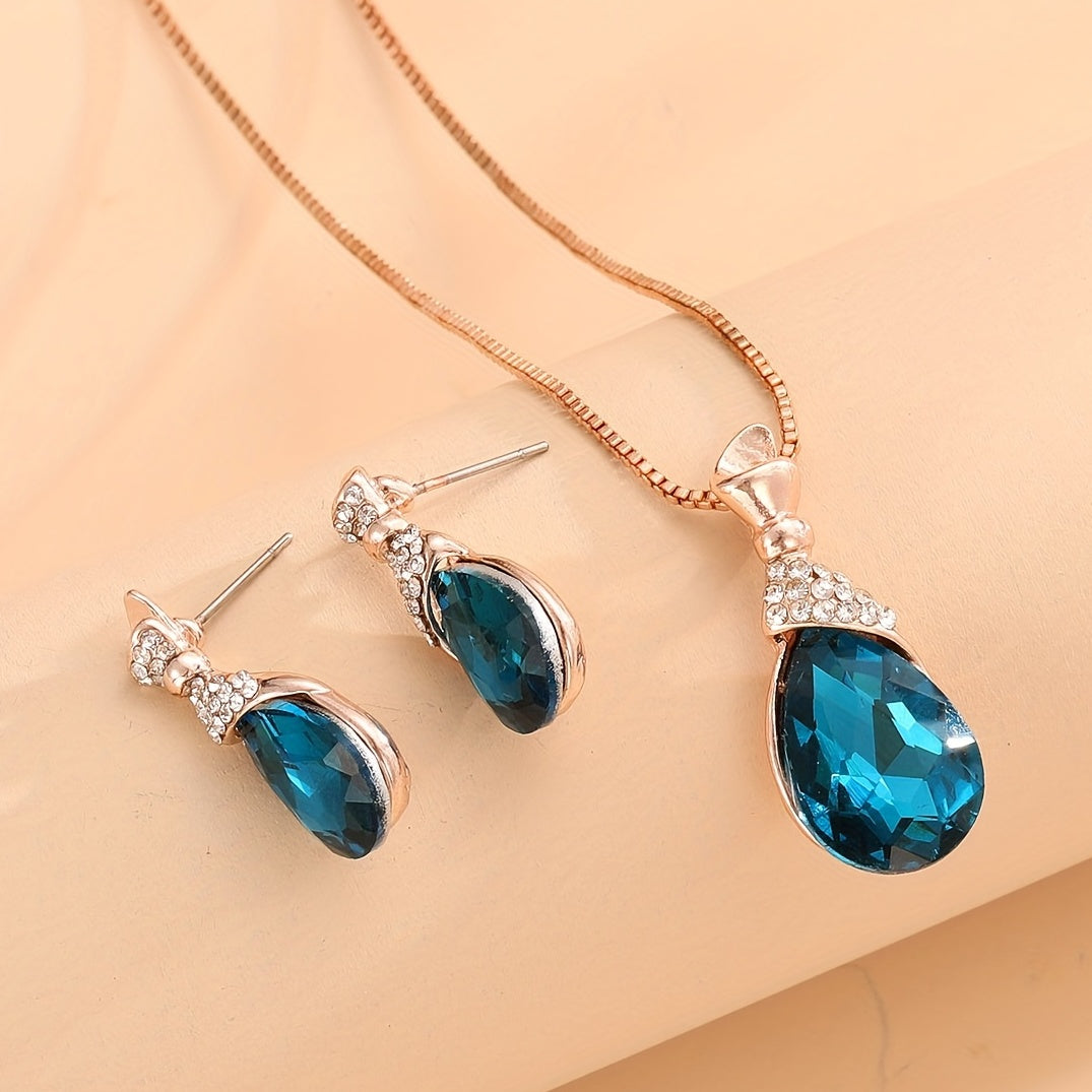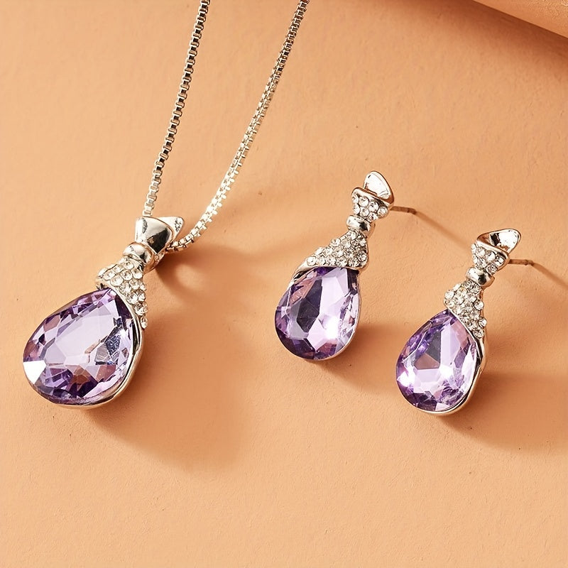 Elevate your daily outfits or party looks with this 3-piece jewelry set. Choose from a variety of inlaid gemstone colors. Perfect for adding a touch of sparkle and charm to any outfit.