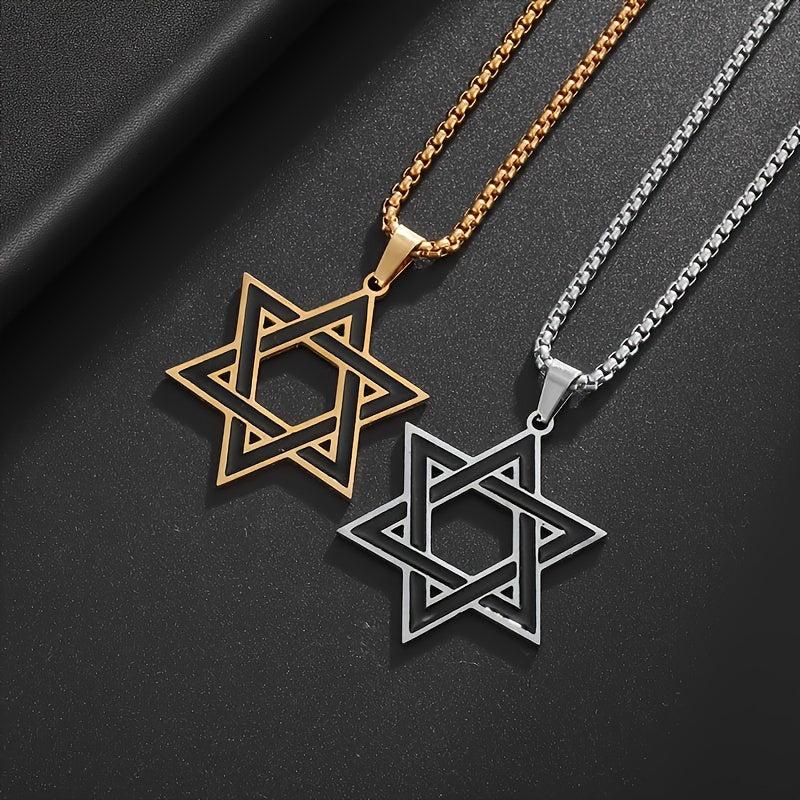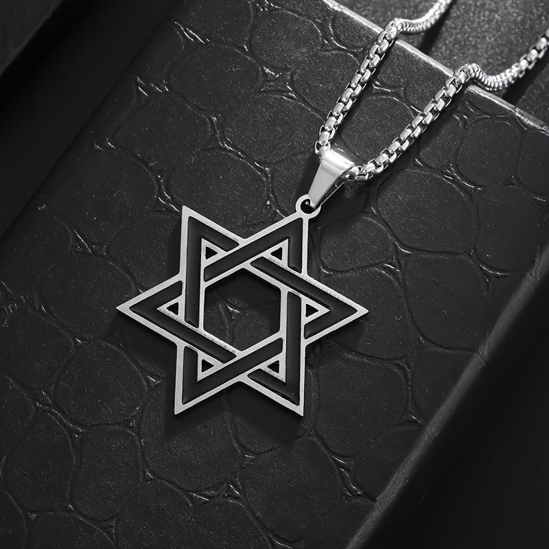 This stainless steel necklace features a hollow Star of David pendant. It is a versatile accessory suitable for both men and women.