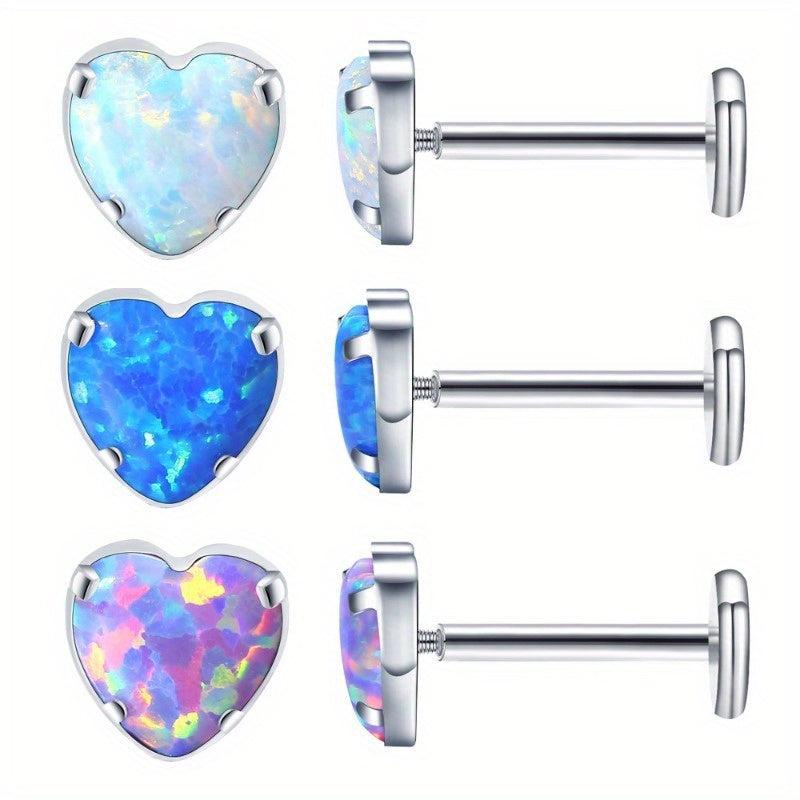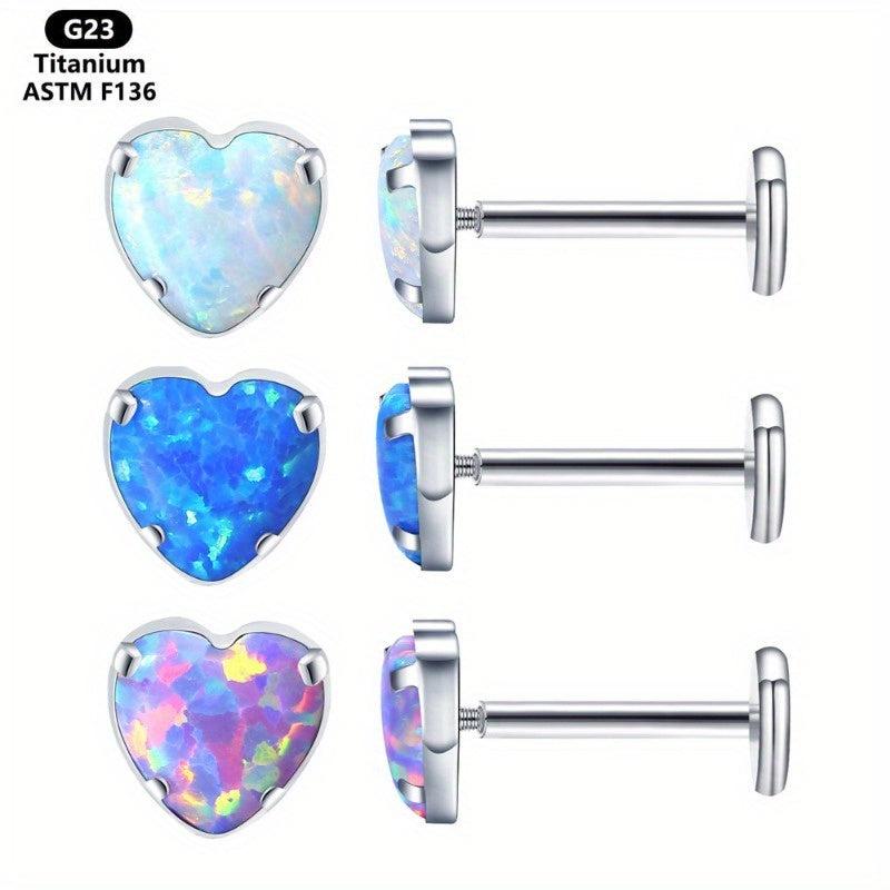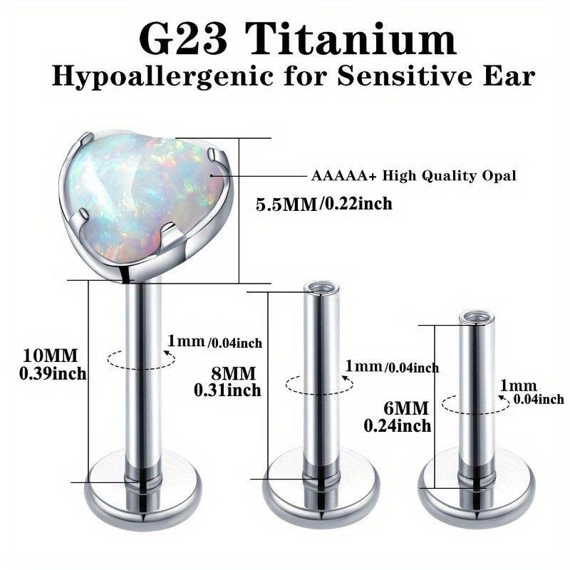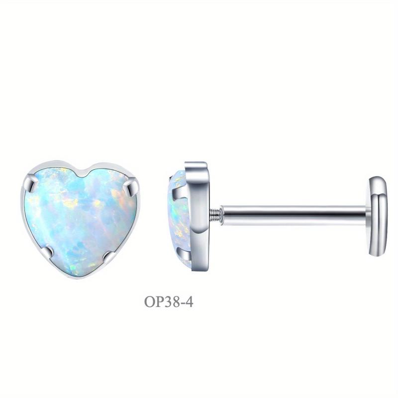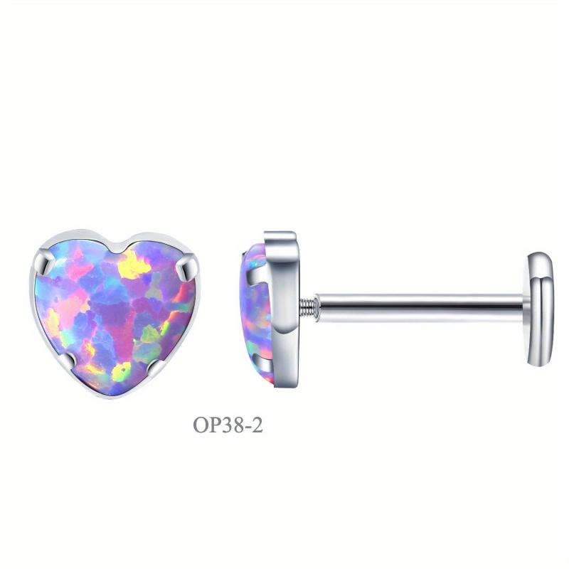 Add a touch of iridescence to your look with these heart-shaped opal earrings. Made of G23 titanium alloy, designed for cartilage and lip piercings.
