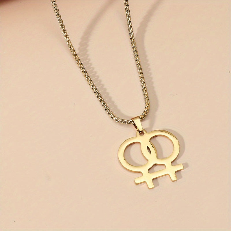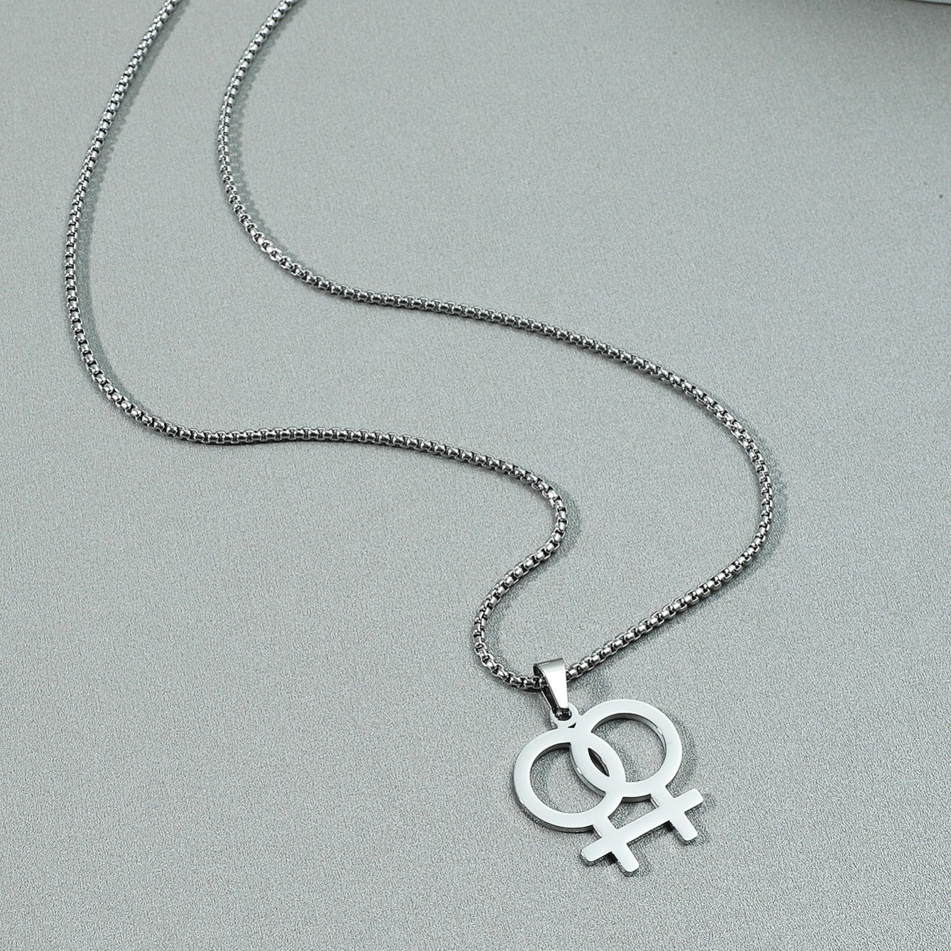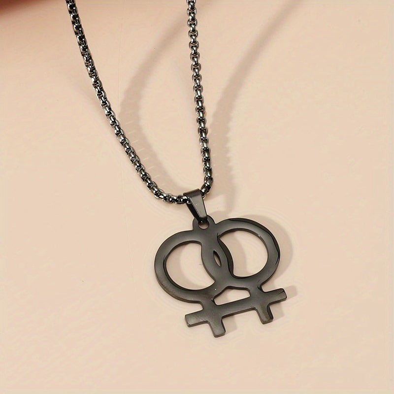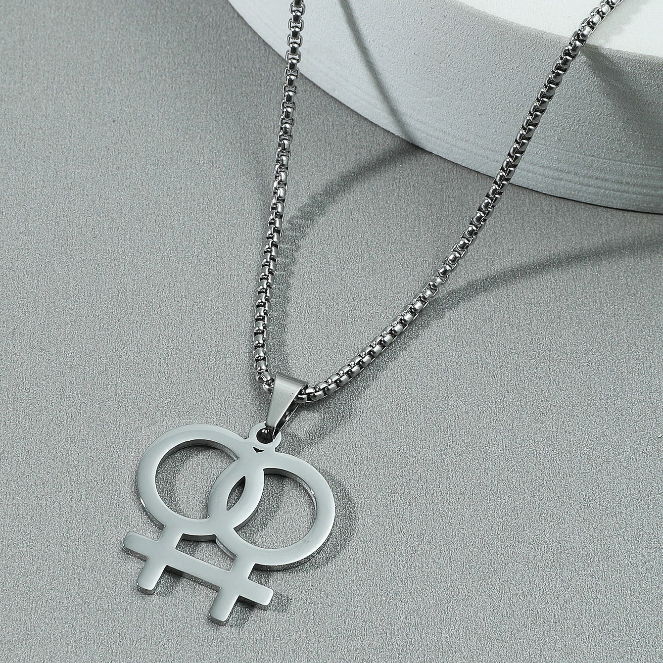 Celebrate love with this unisex stainless steel pendant necklace representing gay and lesbian pride. Ideal for couples or individuals.