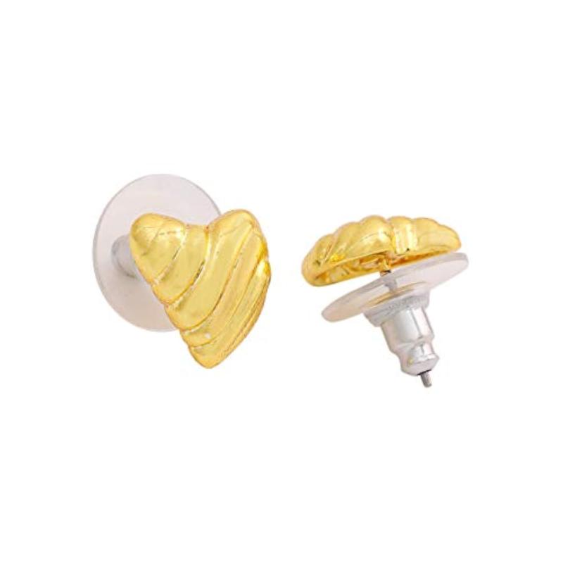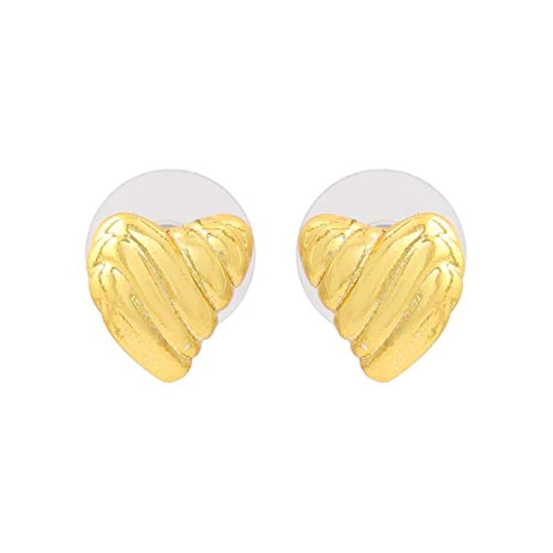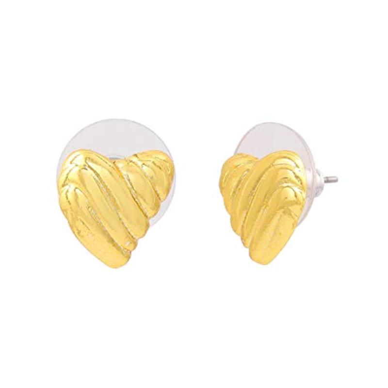 These stylish two-tone ribbed heart stud earrings are perfect for adding a touch of elegance to any outfit.