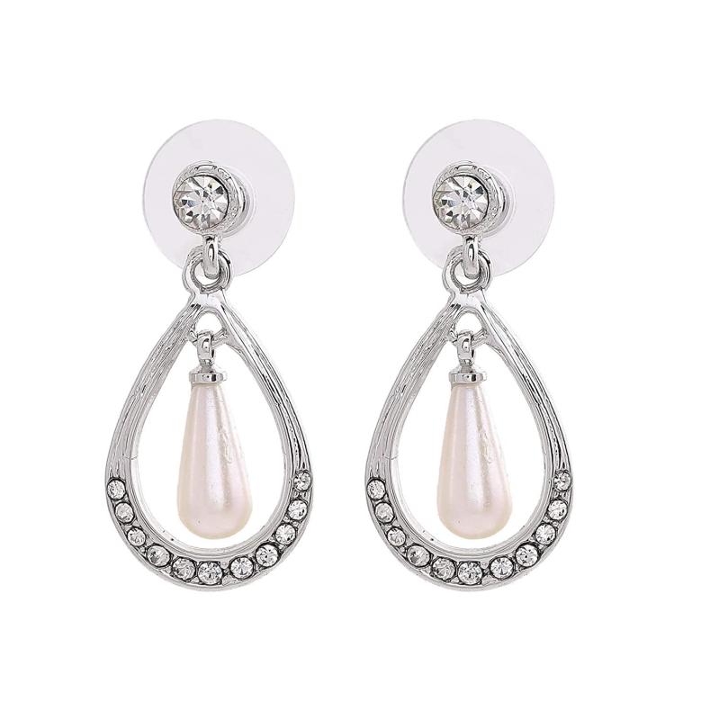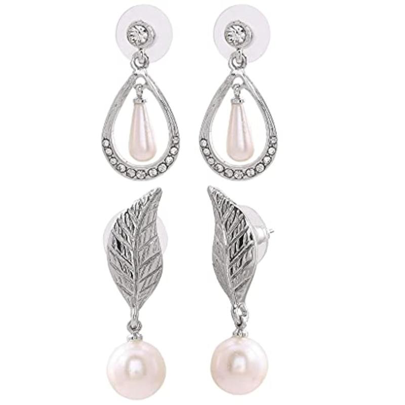 Elegant and stylish Gehena crystal pearl silver plated earrings set of 2. Perfect for any occasion.