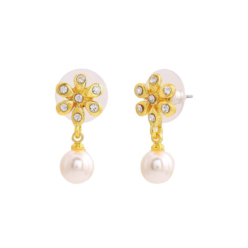 Elegant pearl drop earrings by Gehena, featuring a delicate design with a touch of magnolia essence.