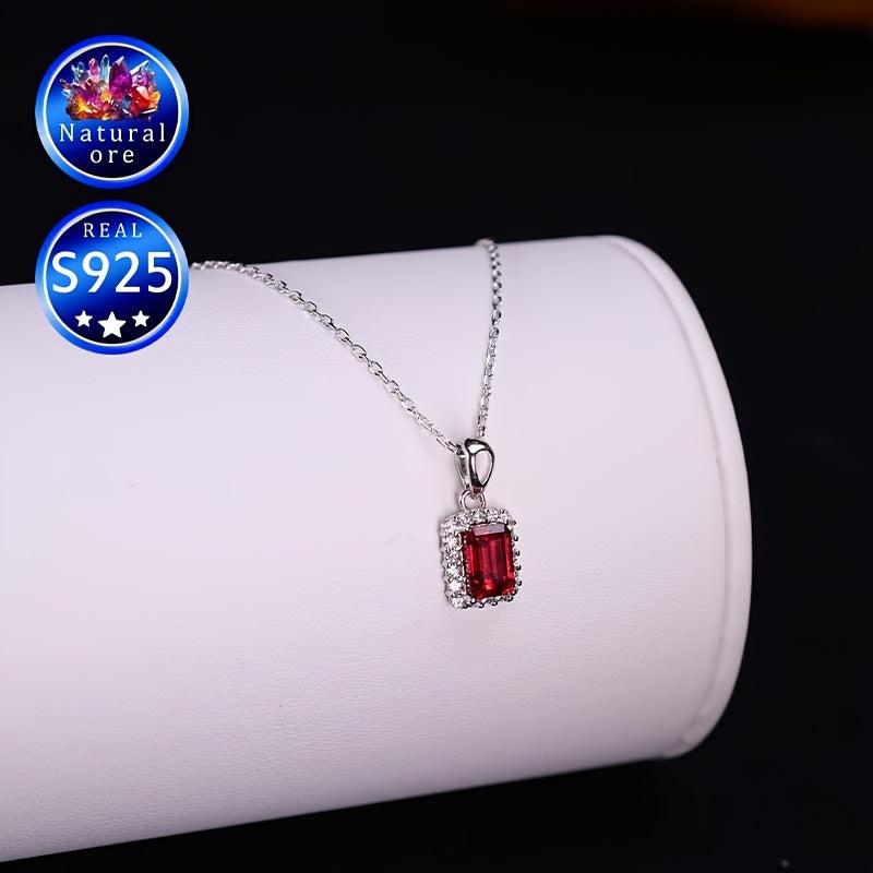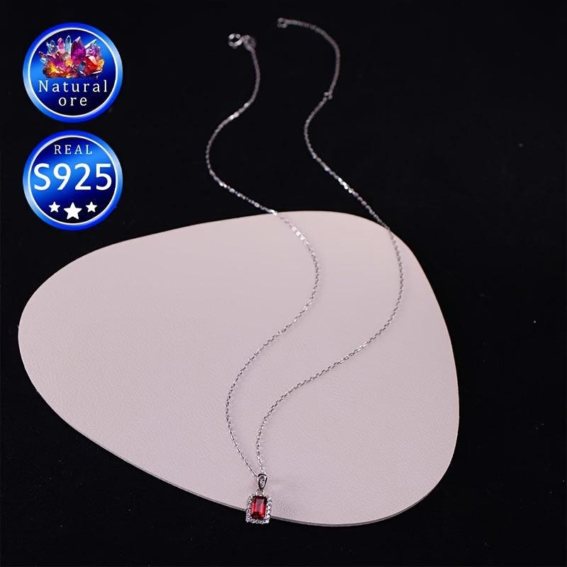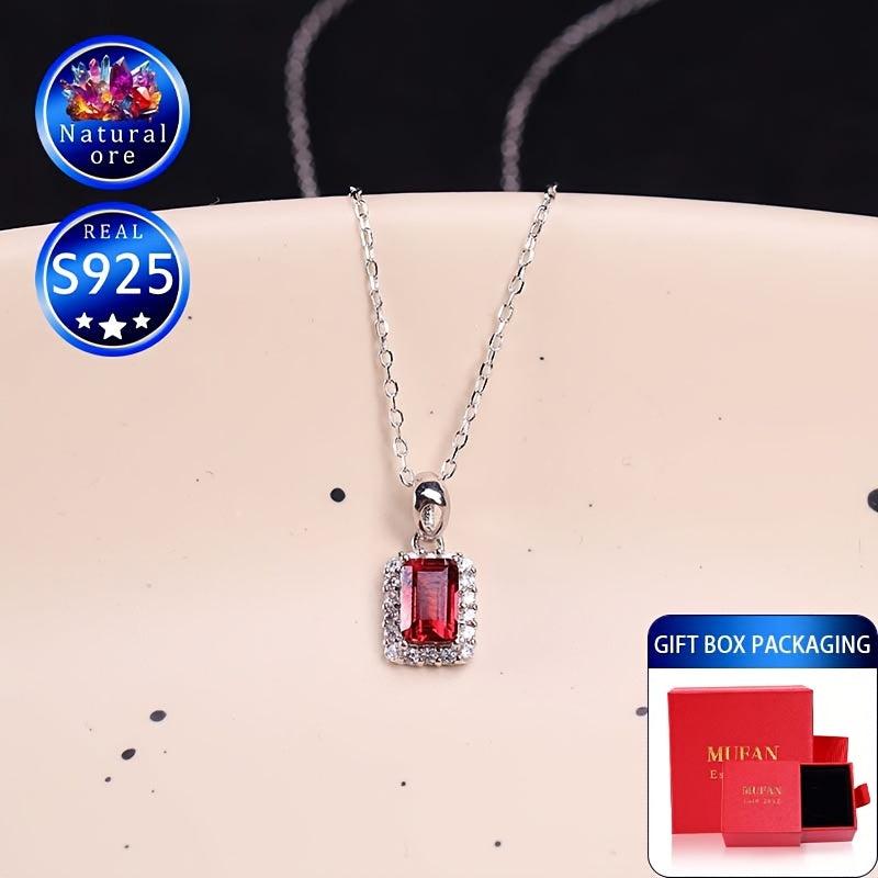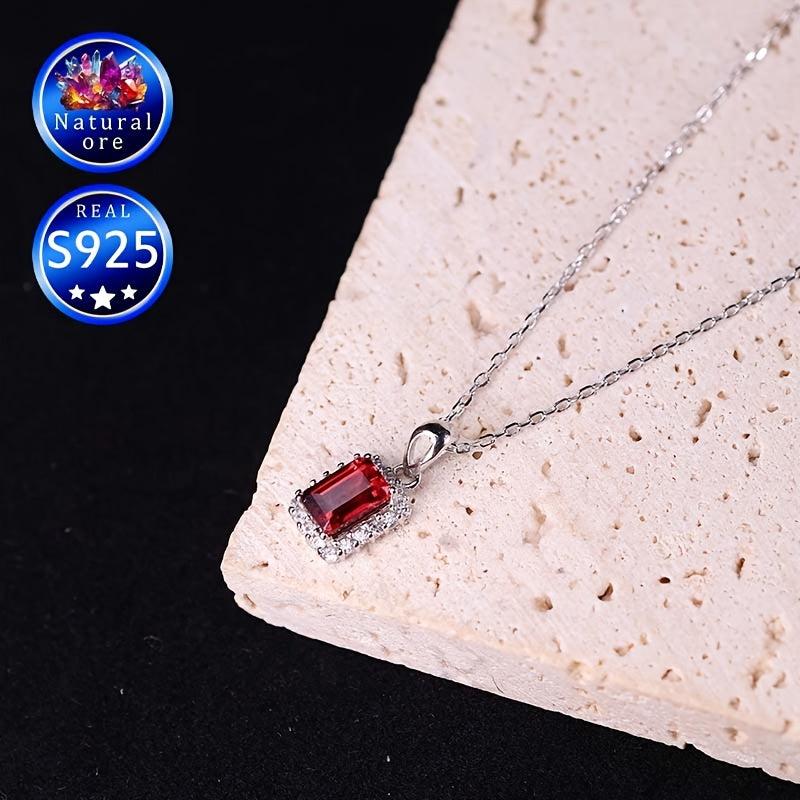 This elegant red garnet pendant necklace is made of S925 silver, perfect as a wedding accessory or a high-end jewelry gift. The stunning design adds a touch of sophistication to any outfit.