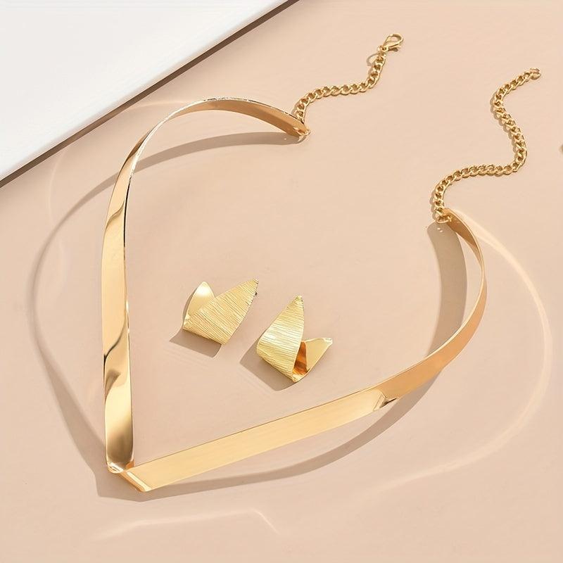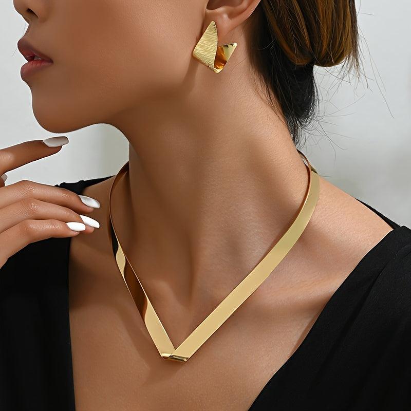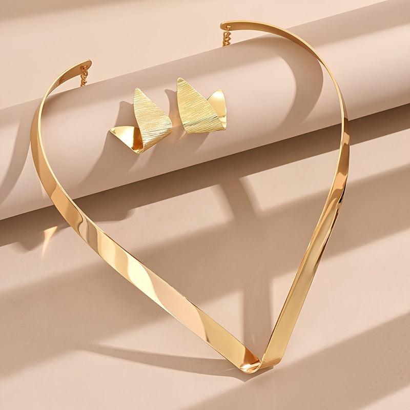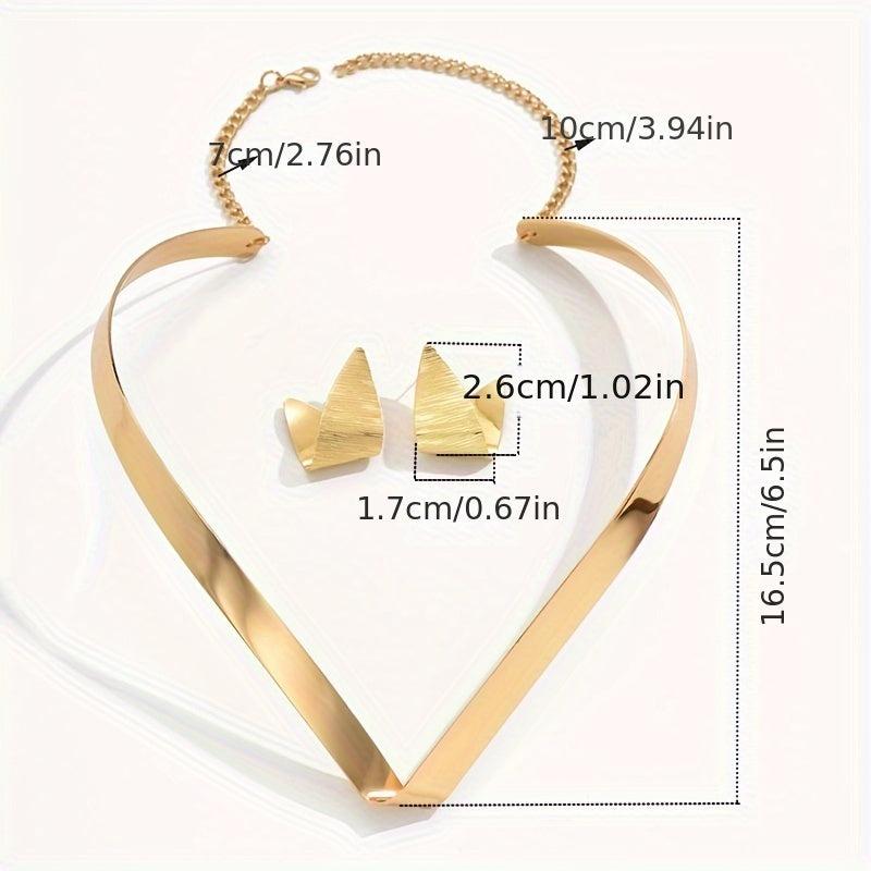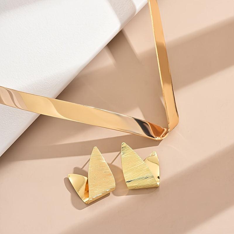 Elegant iron jewelry set featuring a geometric design. This versatile set is perfect for daily wear or parties, and suitable for all seasons.