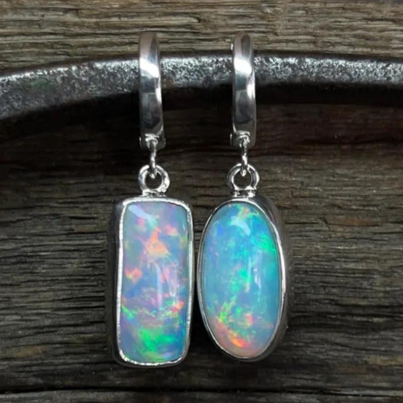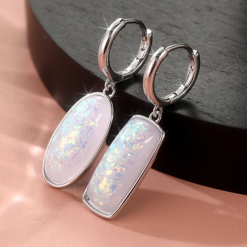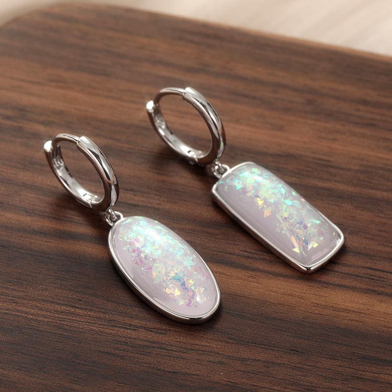 Elevate your style with these stunning Geometric Asymmetrical Pendant Earrings featuring oval and square synthetic gemstones inlayed in copper. These vintage style earrings are elegant and unique, perfect for any occasion.