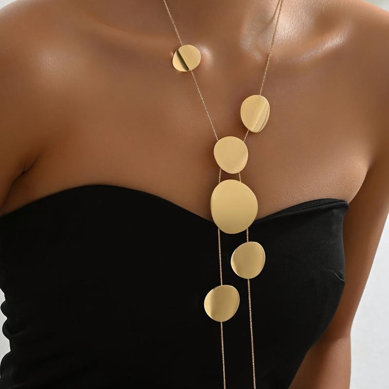 Add a touch of elegance to your outfit with this golden metal chain necklace featuring a geometric circle pendant. Perfect for daily wear and versatile enough to complement any style.