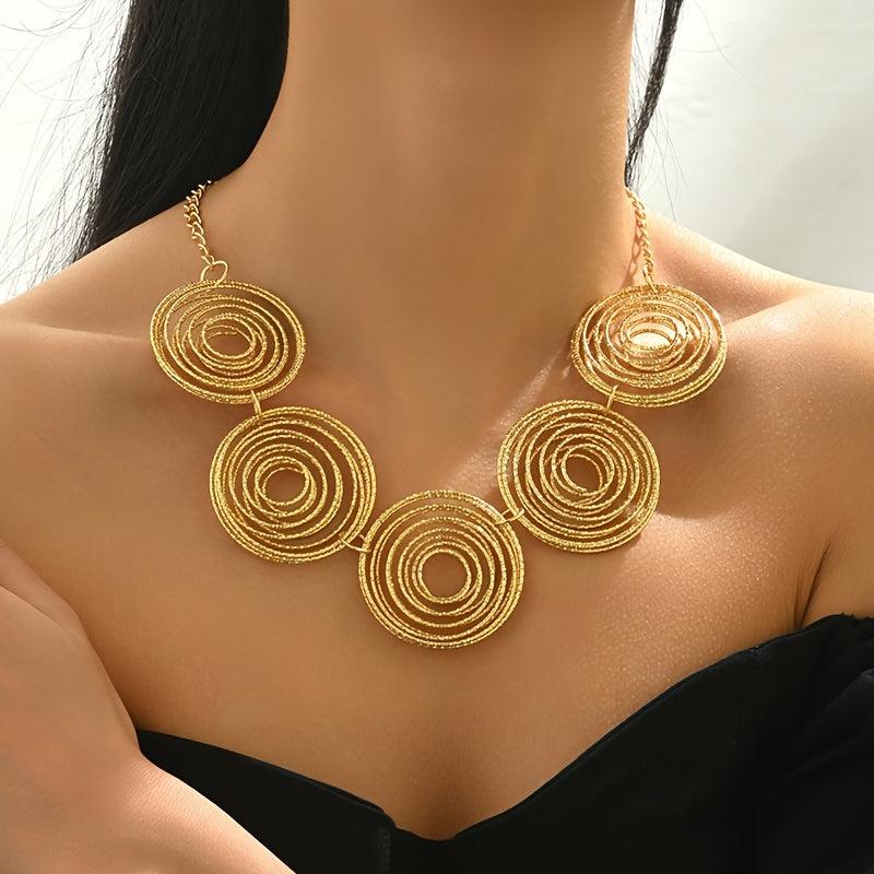 Add a touch of elegance with this versatile iron circle pendant necklace. Perfect for daily wear or party occasions, this hollow geometric necklace is a must-have accessory for any season.