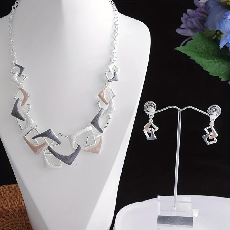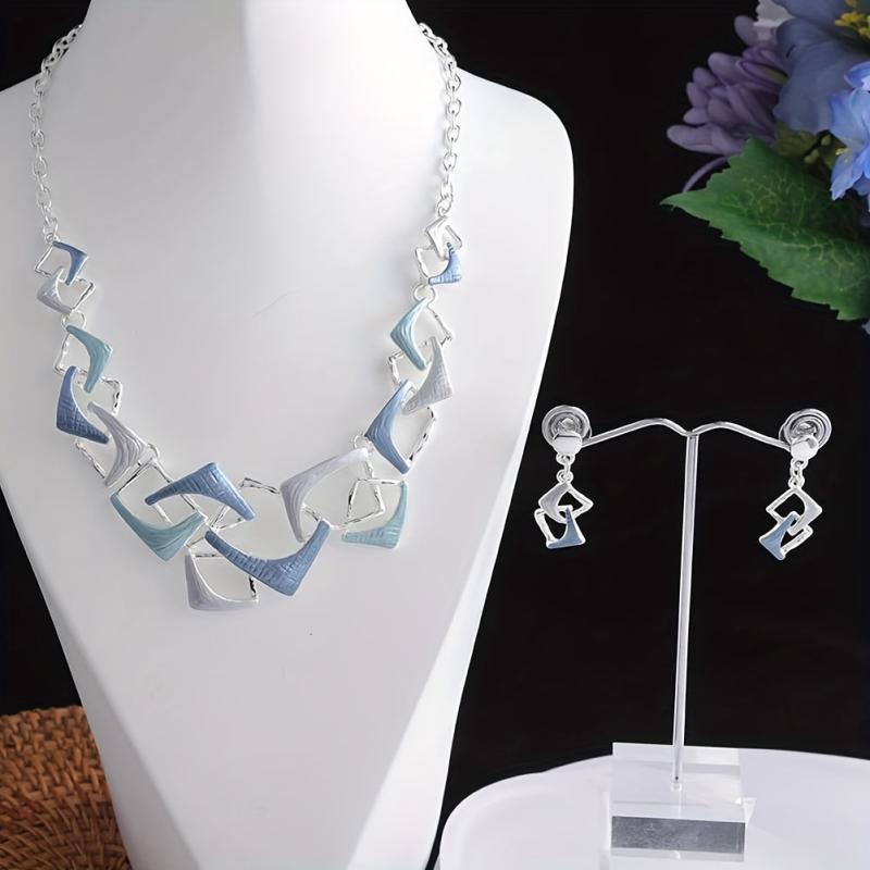 This jewelry set includes a necklace and a pair of earrings with beautiful enamel accents, perfect for parties and events.
