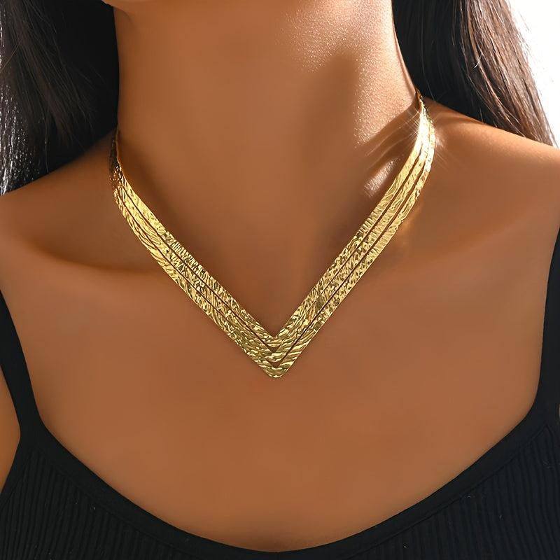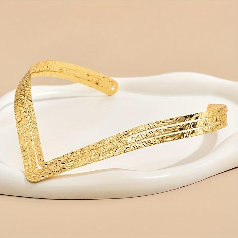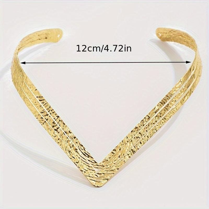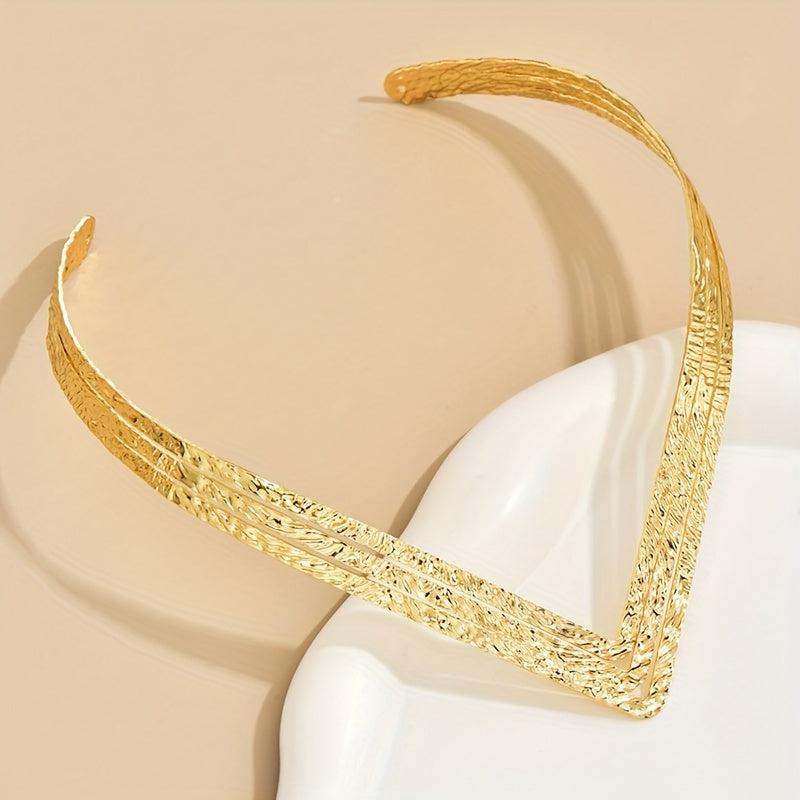 Enhance your style with this striking V-shaped collar necklace featuring an exaggerated geometric design in a luxurious golden finish.