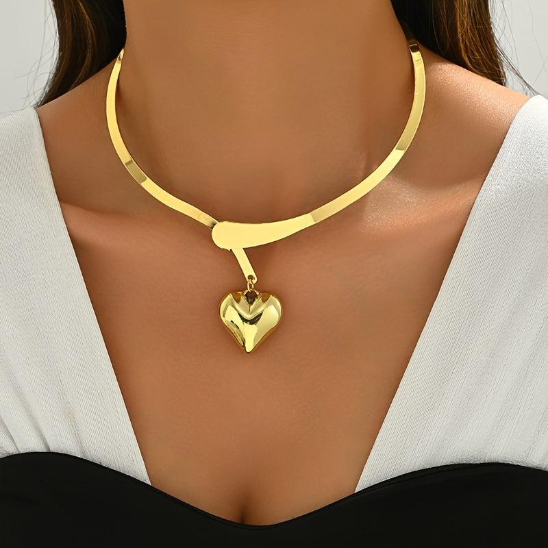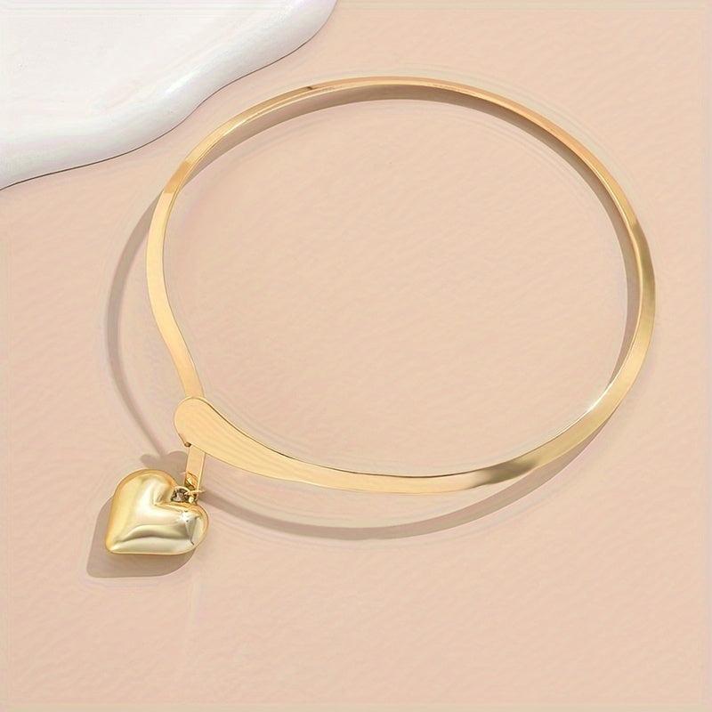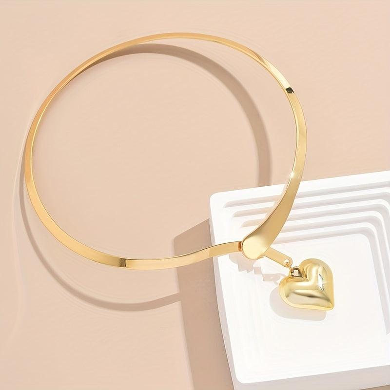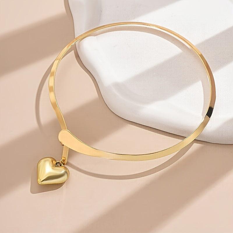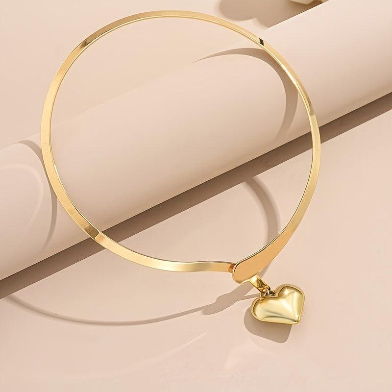 Open geometric heart collar necklace made of alloy with smooth plating. A versatile accessory for daily wear.