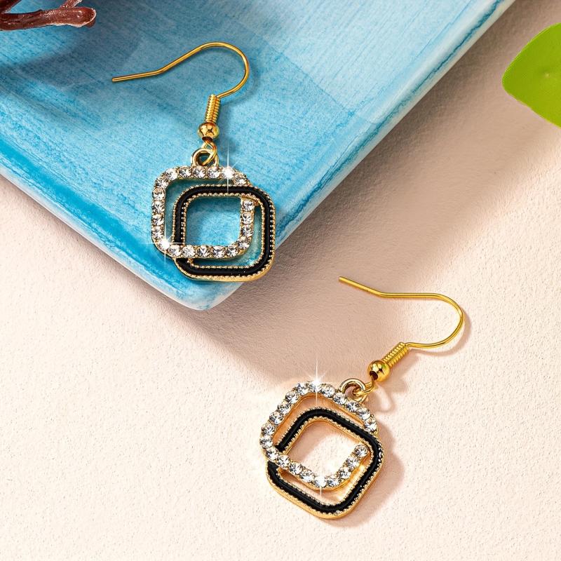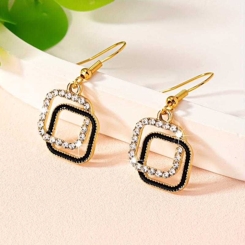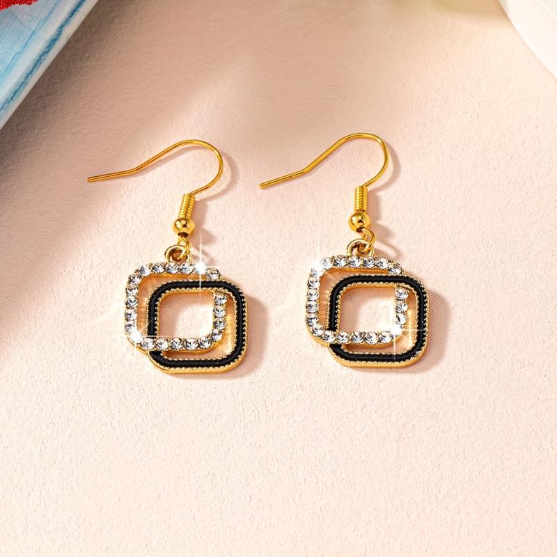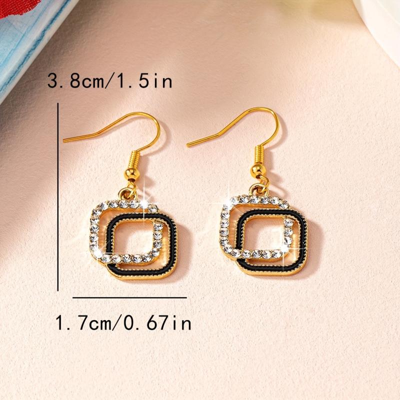 These 2pcs earrings feature a geometric design with hollow out details, glass inlay, and a creative golden tone finish. Ideal for daily wear or parties, these earrings make a perfect gift for her.
