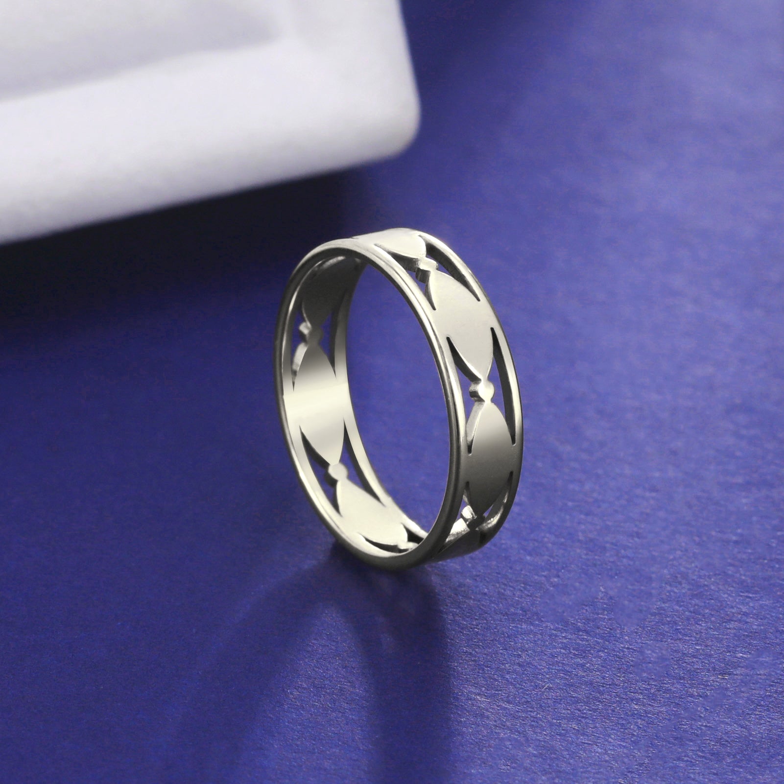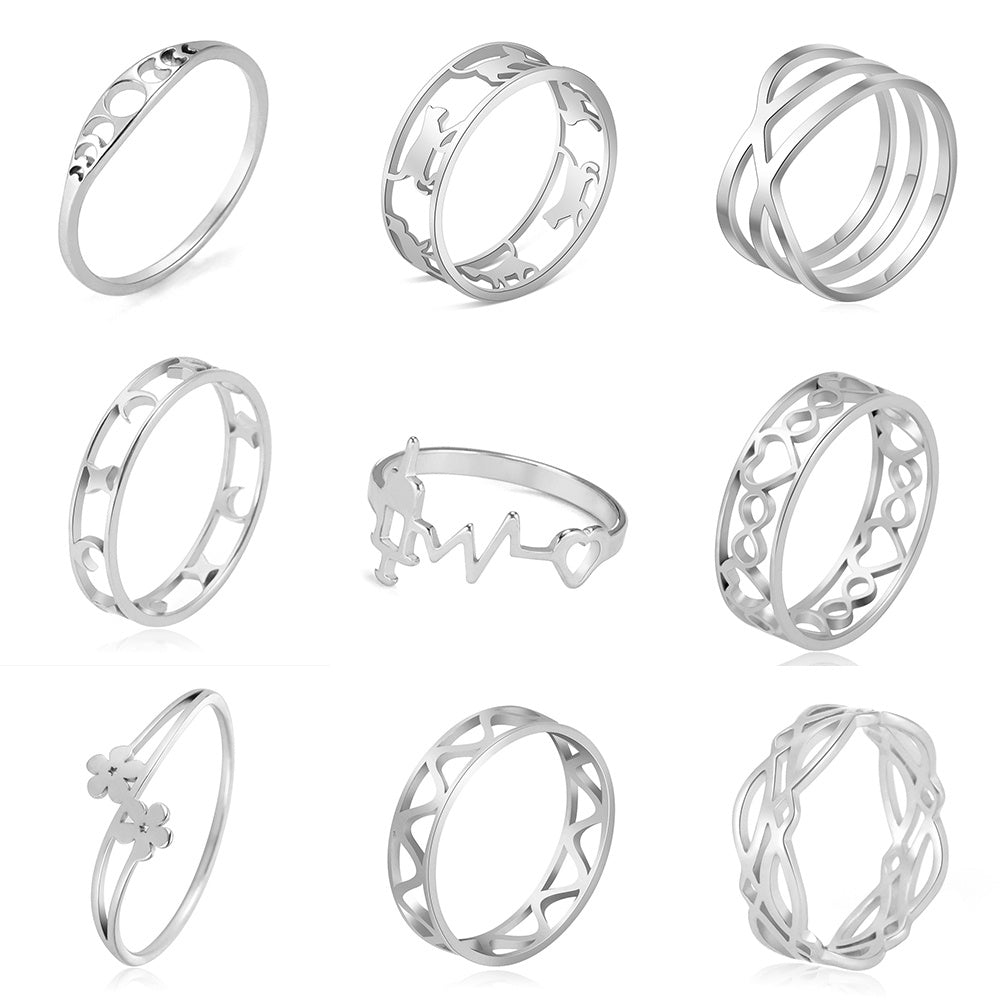This minimalist ring features various geometric patterns like stars, flowers, moons, etc. It is adjustable and stylish for everyday wear.