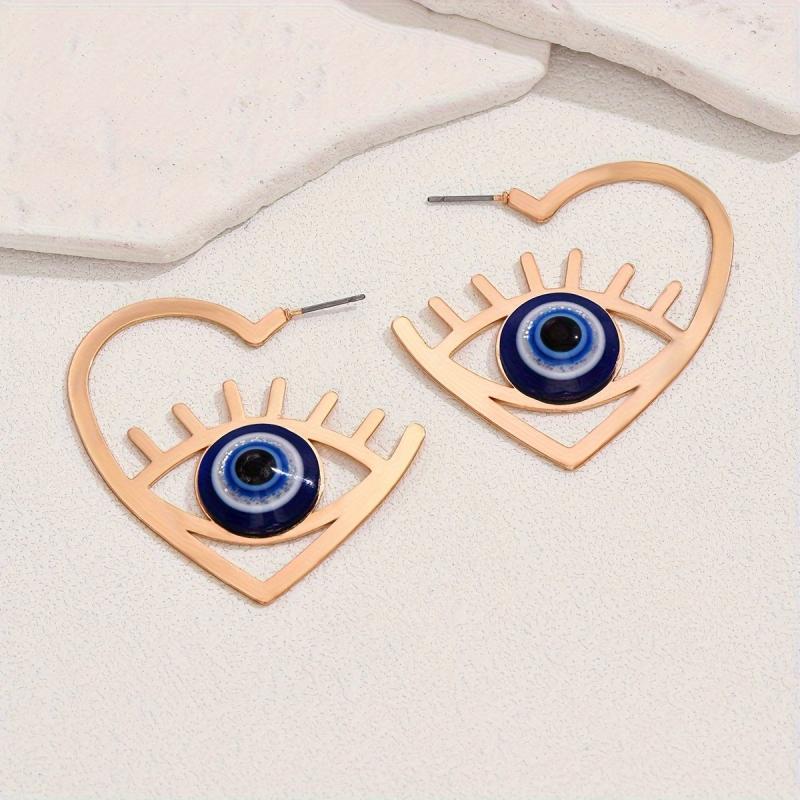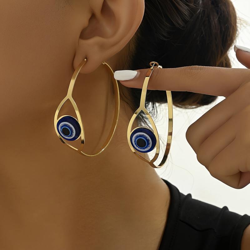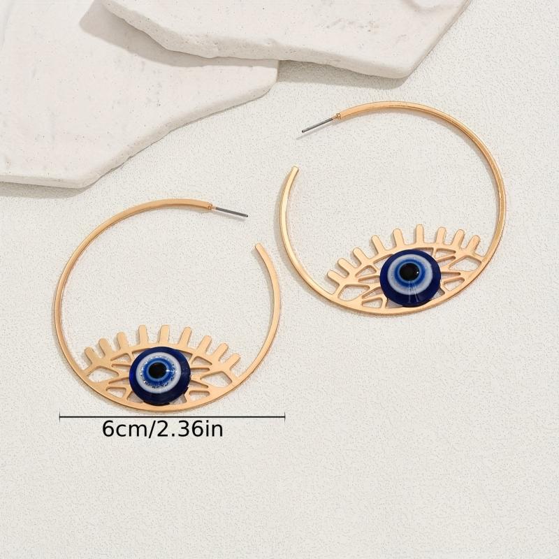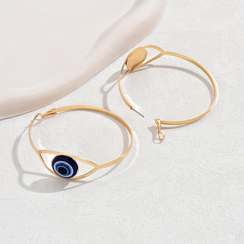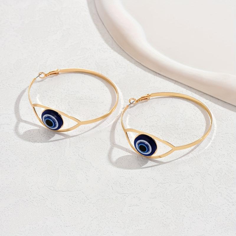 These stylish hoop earrings with devil eye decor are perfect for daily wear or dating. Add a touch of elegance to your outfit.