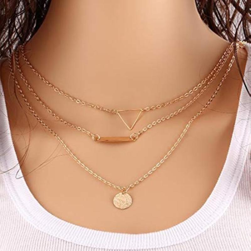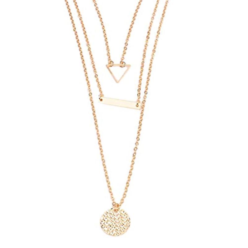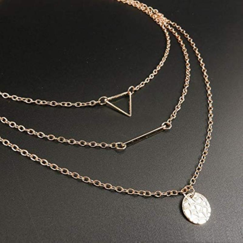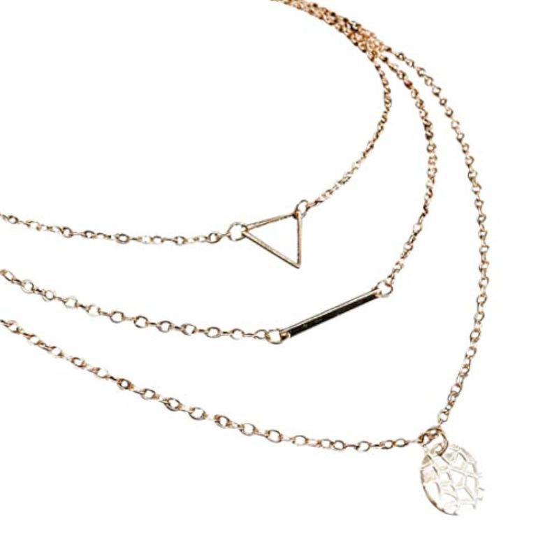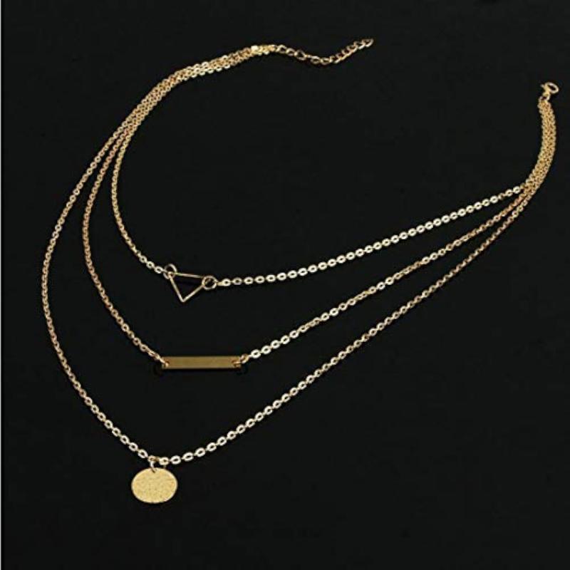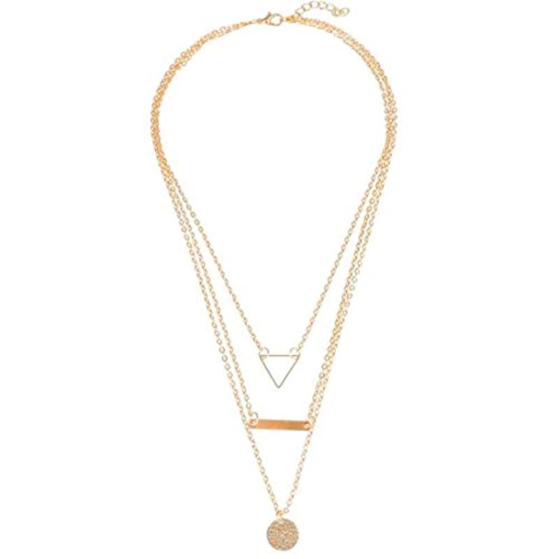 Elevate your style with this ravishing geometric layered necklace. A perfect addition to any outfit, this necklace is sure to make a statement.