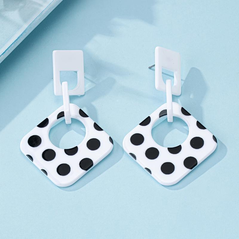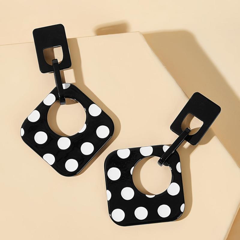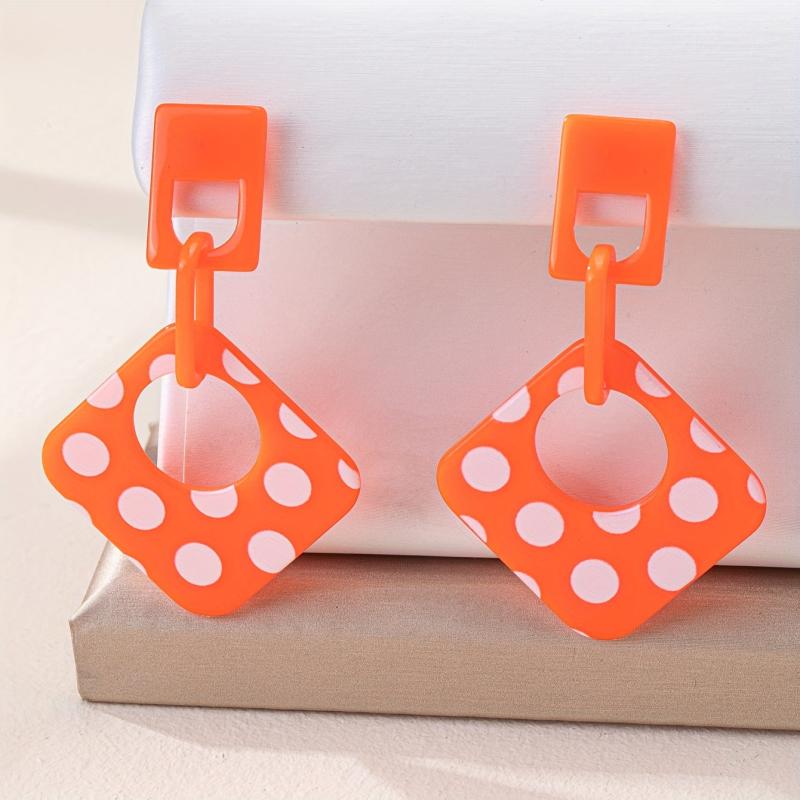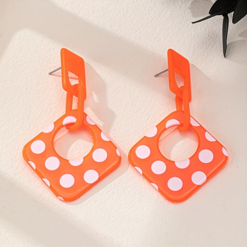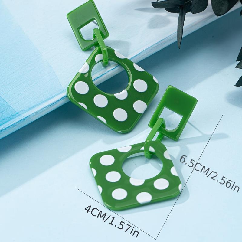 Add a touch of retro style to your casual attire with these geometric minimalist acrylic earrings. They are lightweight, durable, and easy to care for, making them perfect for everyday wear. The seasonal polka dot design adds a fun and stylish element to your jewelry collection.