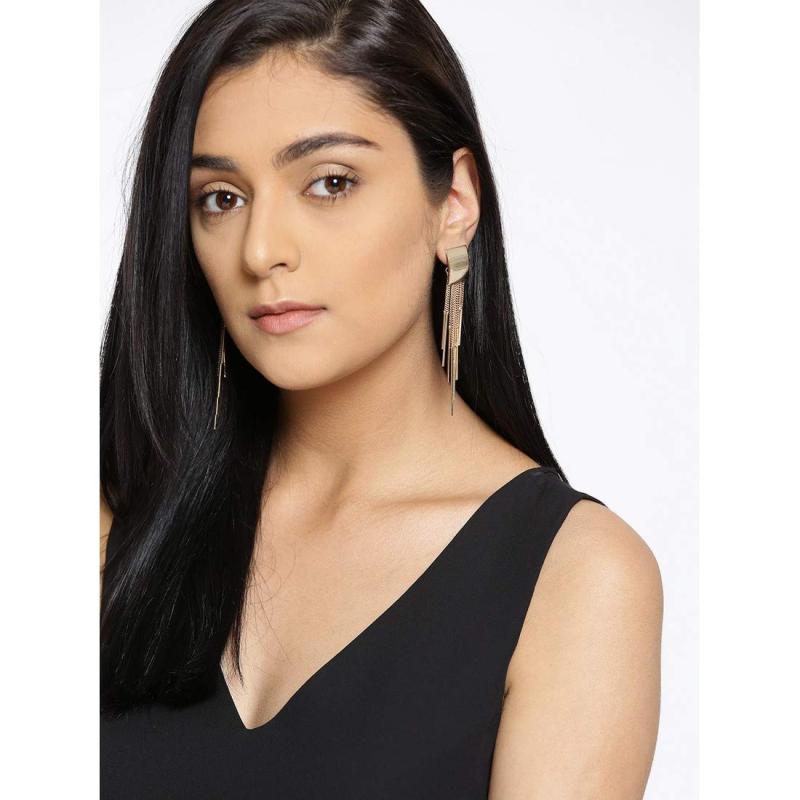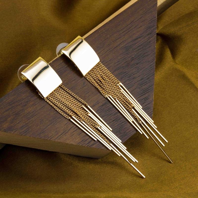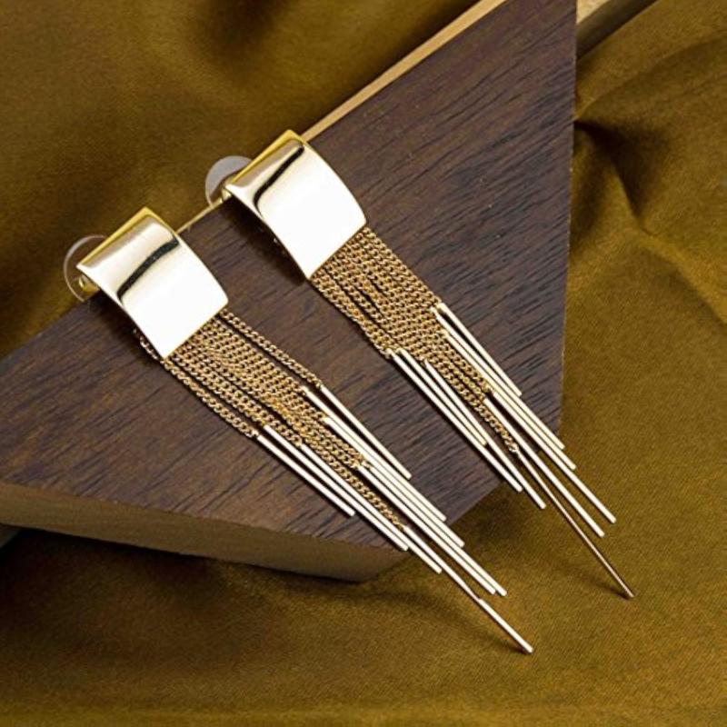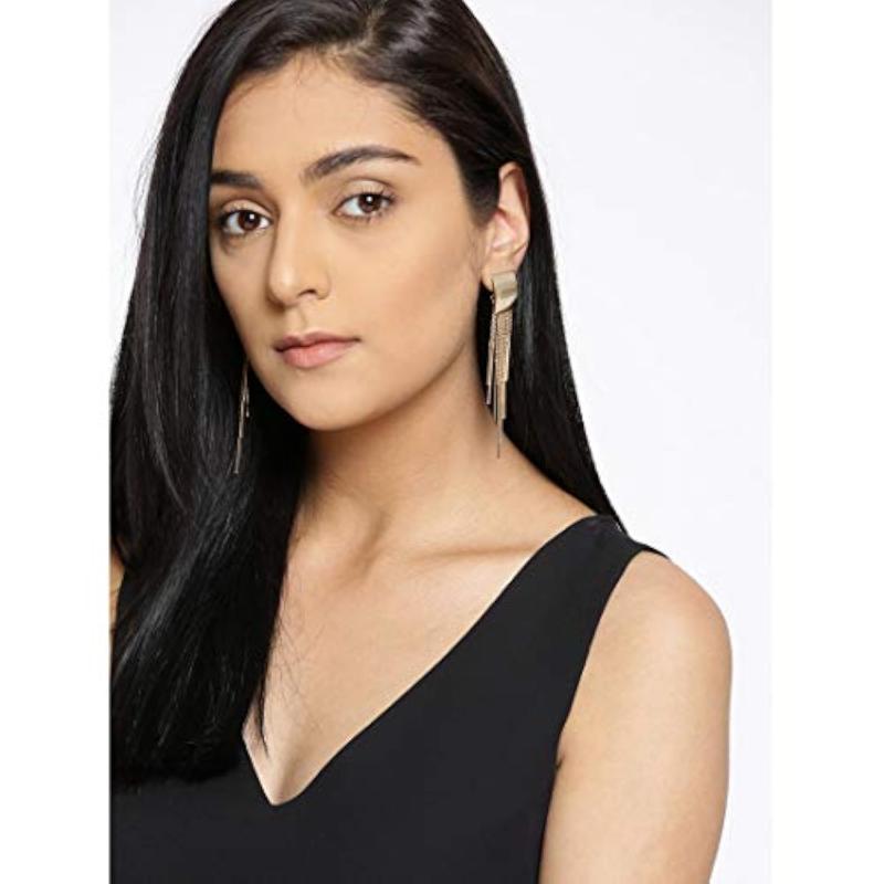Add a touch of luxury to your outfit with these sparkling chain drop earrings featuring geometric opal stones. Perfect for any occasion.