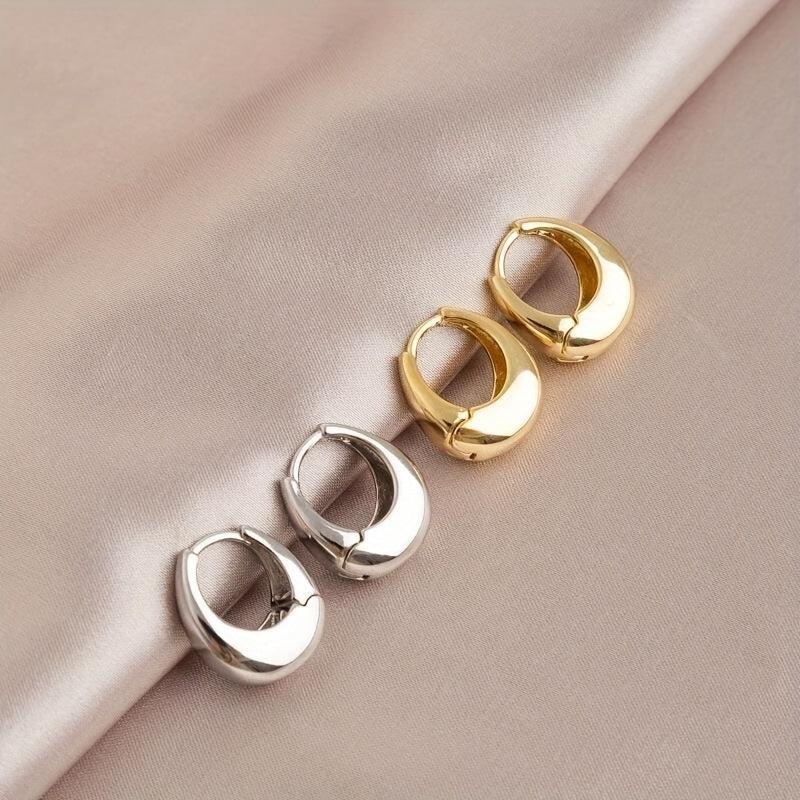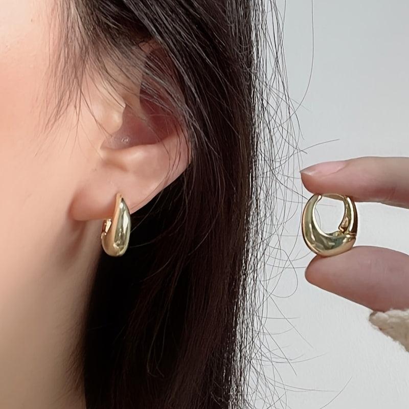 Sleek and stylish geometric oval dangle earrings with a golden tone alloy and stainless steel posts. Perfect for daily commute and formal events.