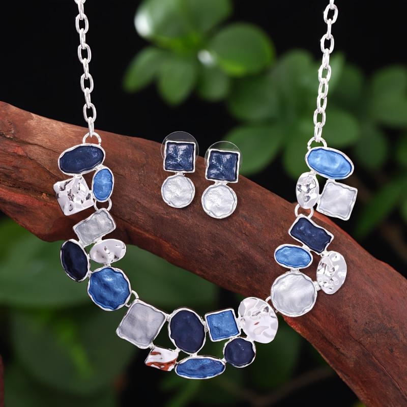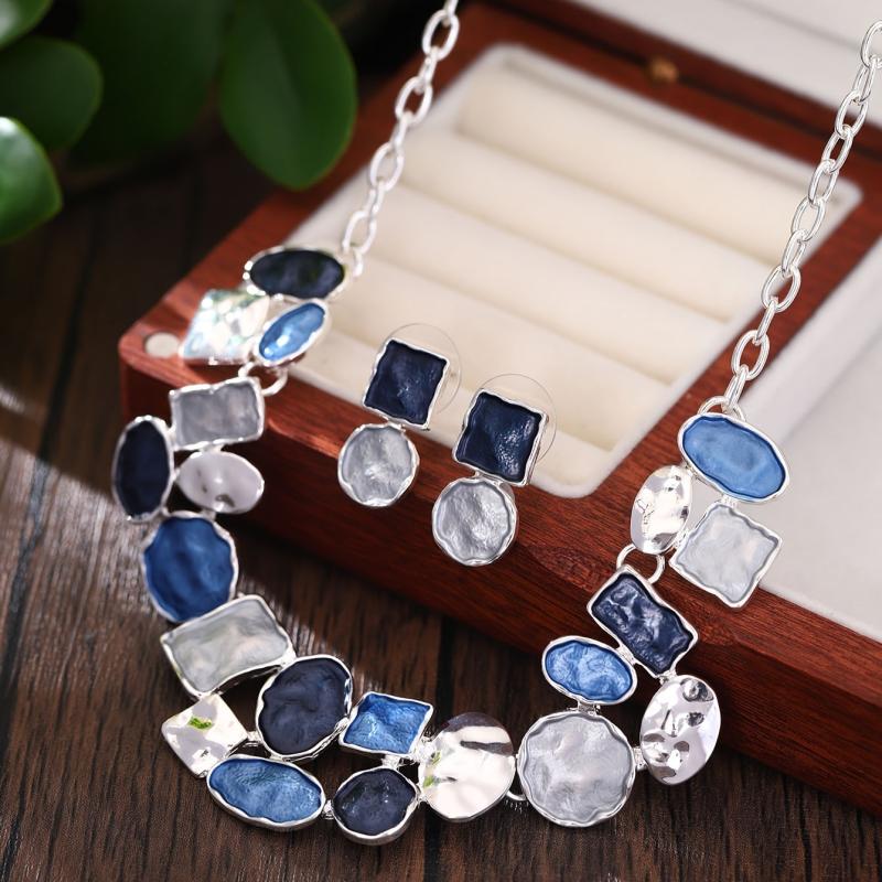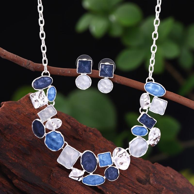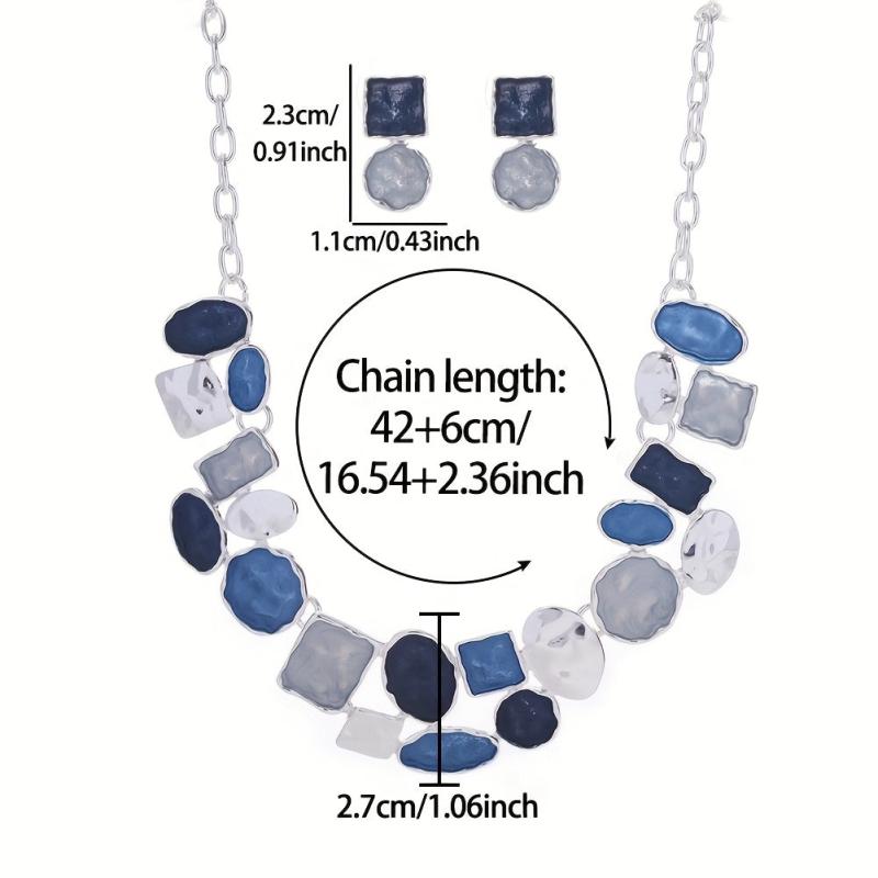 This stylish set includes a pair of oval earrings and a matching necklace with a modern painting design. Made of high-quality zinc alloy, these accessories are perfect for adding a touch of art to your outfit.