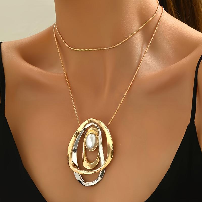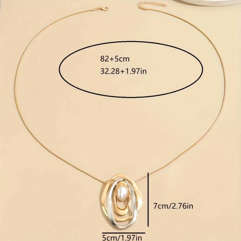 Elegant necklace with a golden hollow oval pendant and acrylic beads on a snake chain.