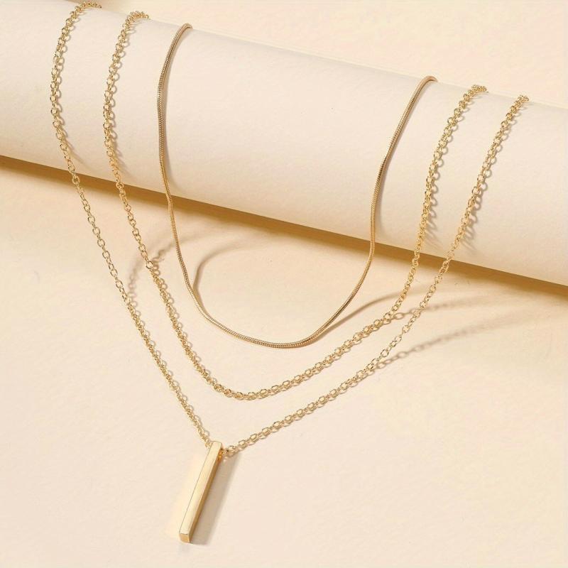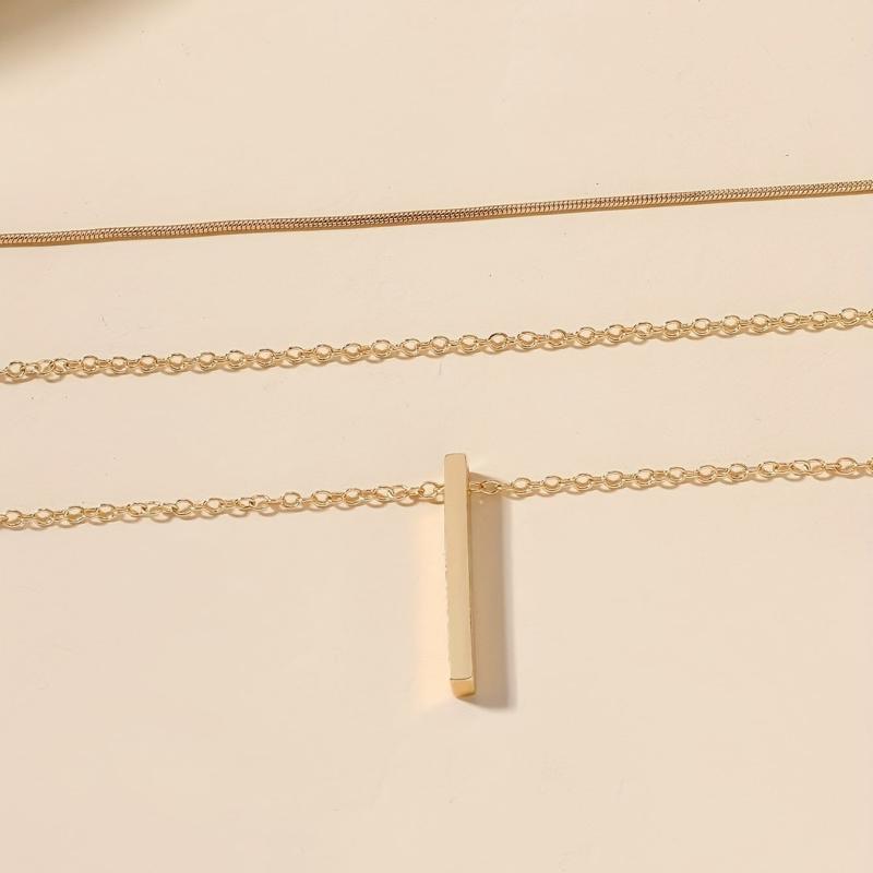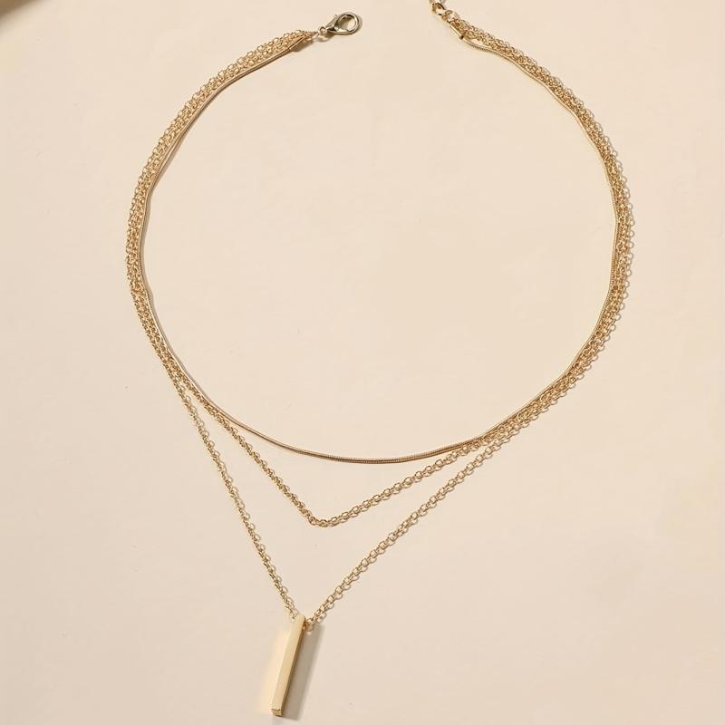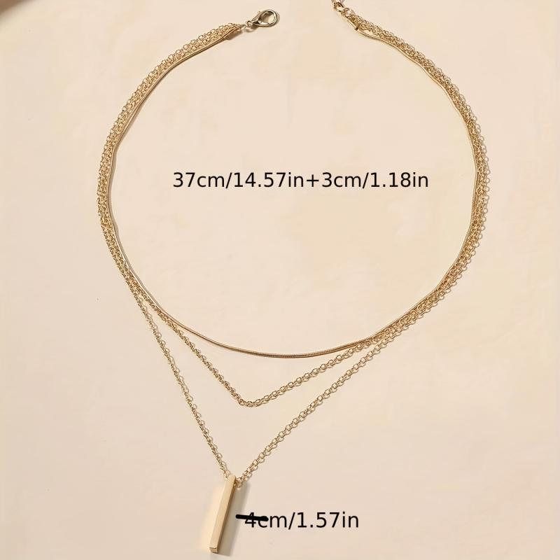 Elevate your holiday style with this multilayer geometric pendant chain necklace. Made with high-quality 18K plated metal, this accessory adds a touch of elegance to any outfit.