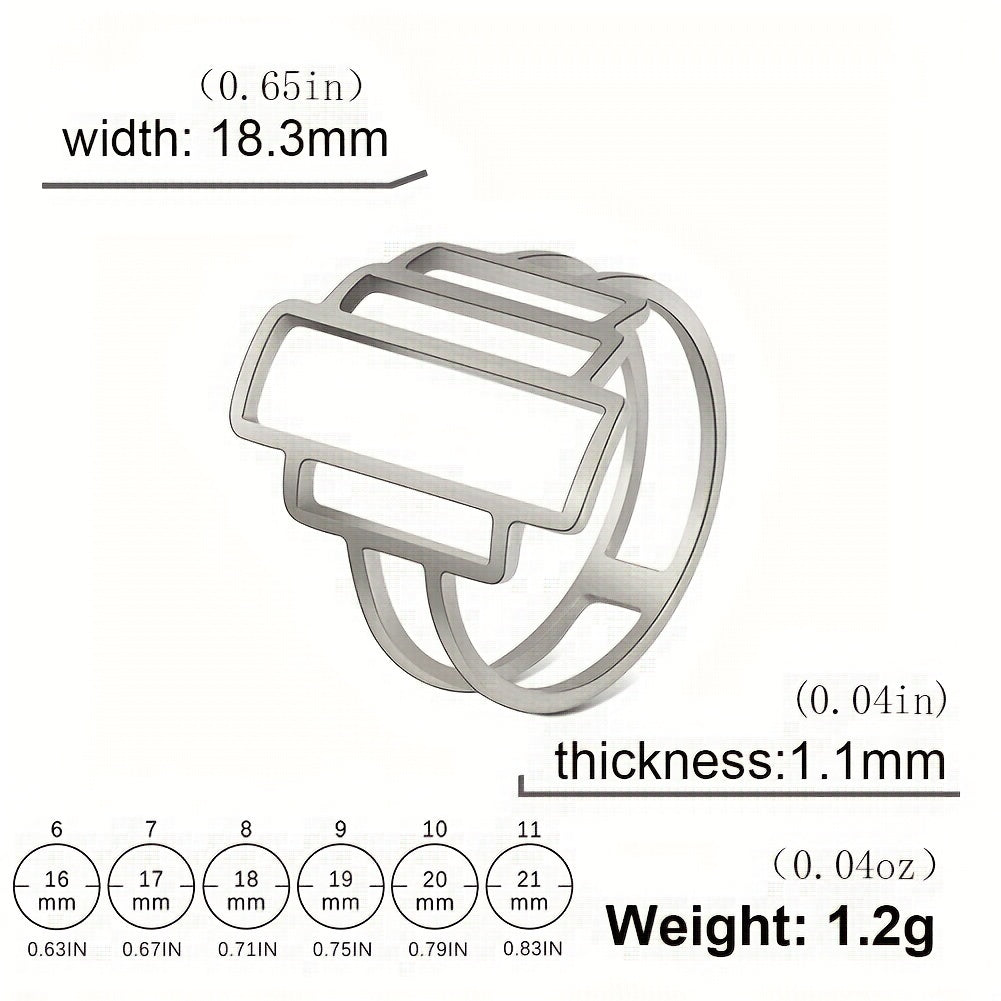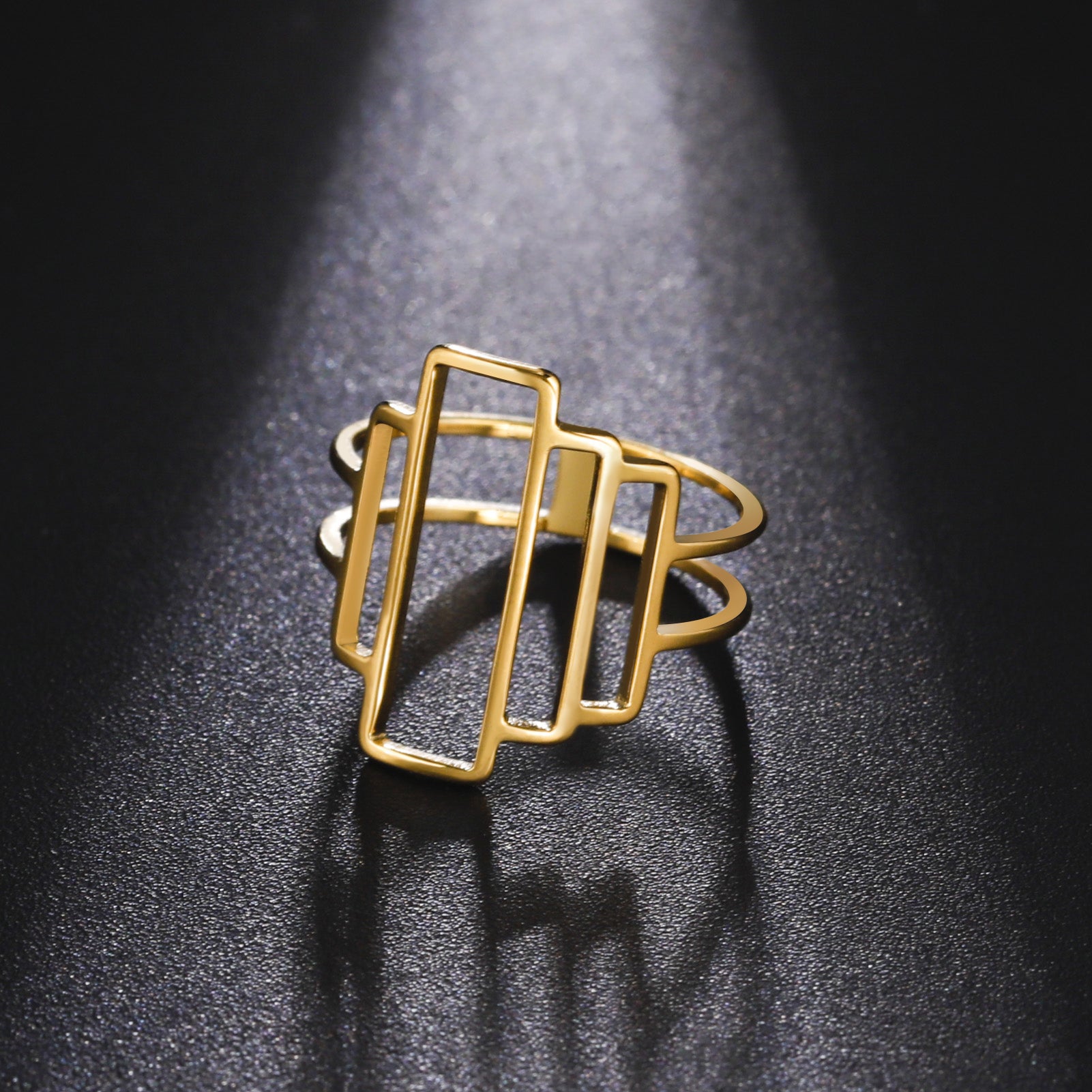 This stylish stainless steel ring features geometric rectangle design. Perfect gift for mothers!