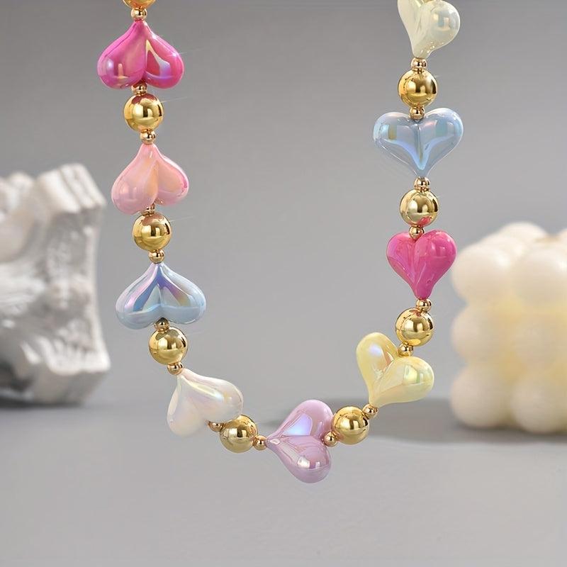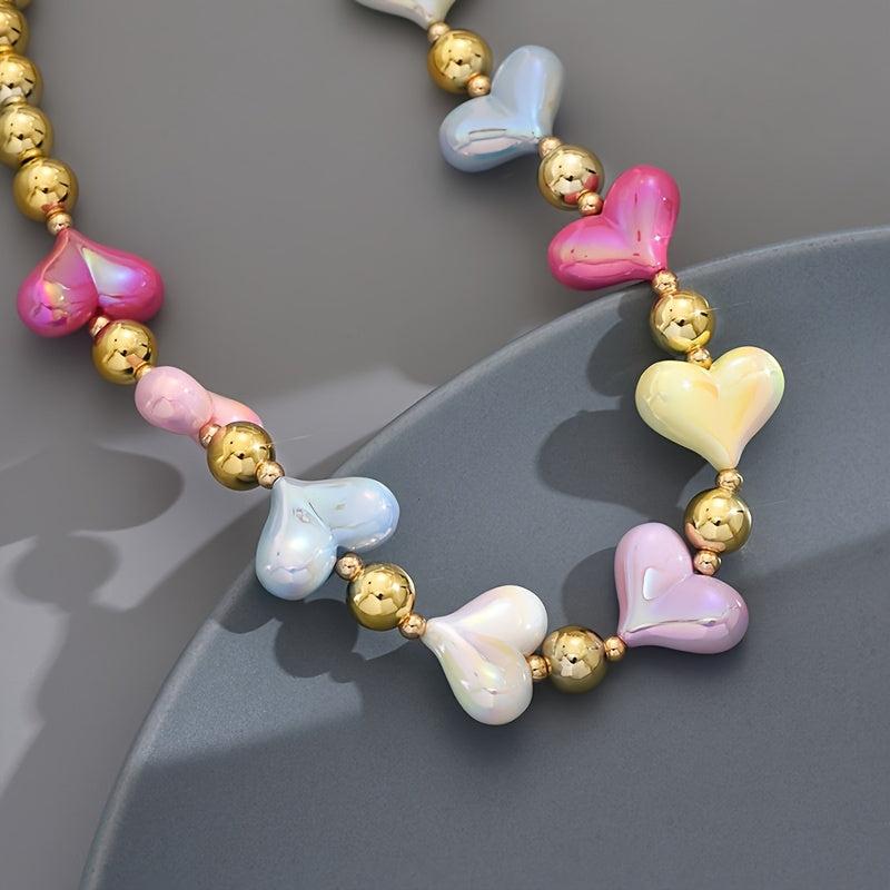 Stylish heart-shaped pendant in candy colors, perfect for daily wear or parties. Versatile accessory suitable for all seasons.
