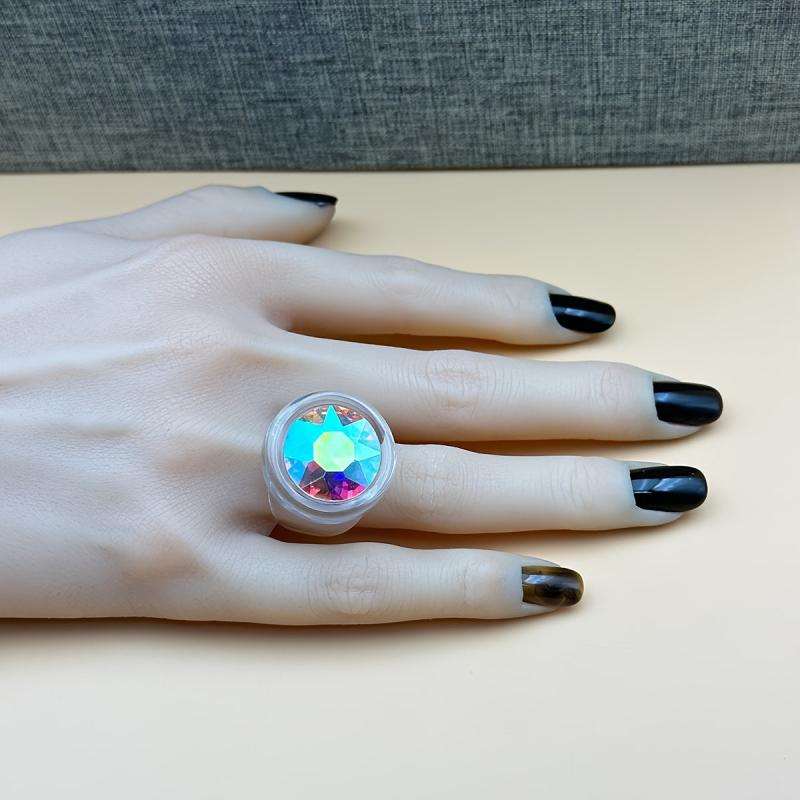 This sparkling mixed resin ring is perfect for parties or daily wear. It makes a unique gift for Valentine's, Chinese New Year, and Ramadan.