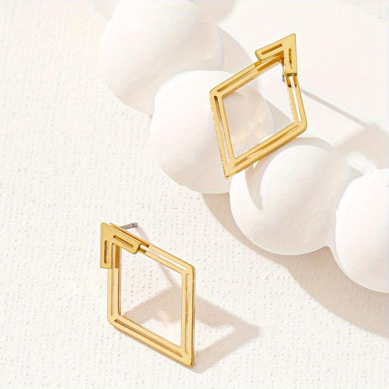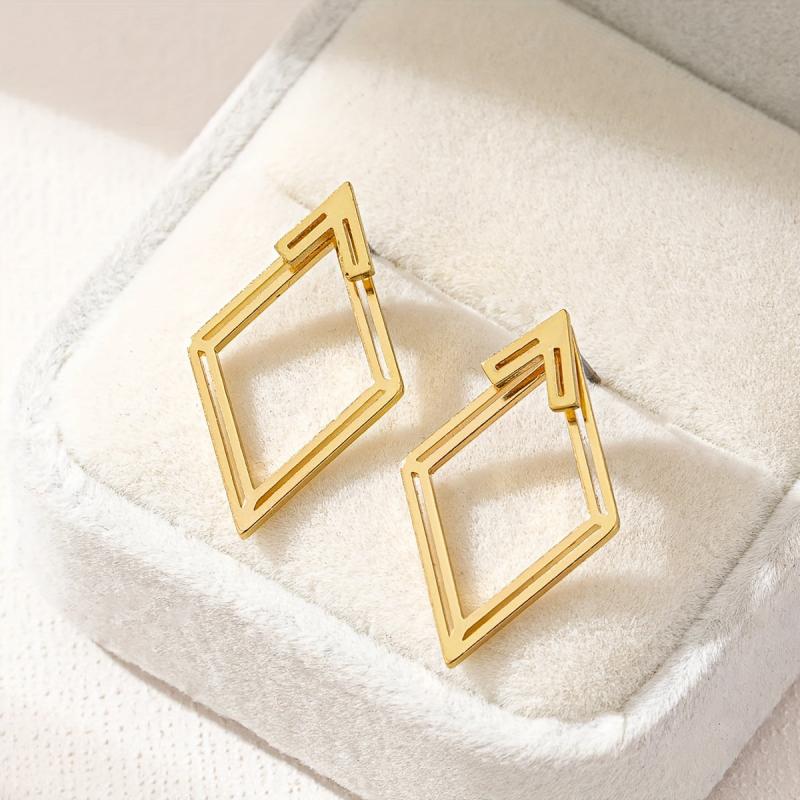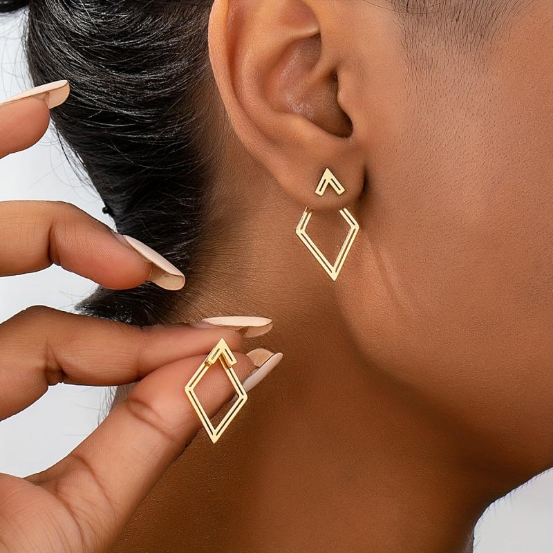 Elevate your style with this pair of chic geometric rhombus earrings and stylish hanging earrings.