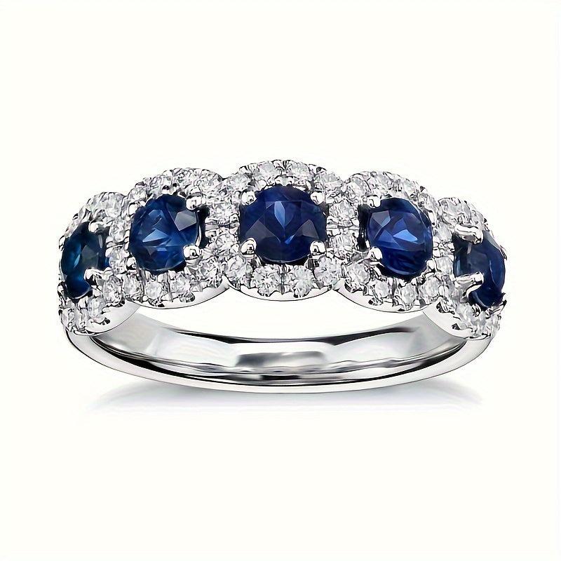 This stylish ring is a perfect accessory for weddings, engagements, parties, daily wear, gifts, and vacations. It features a geometric design with synthetic cubic zirconia stones set in copper. Available in sizes 6 to 11.