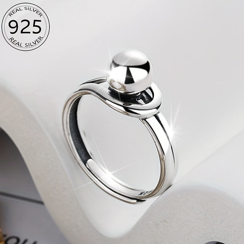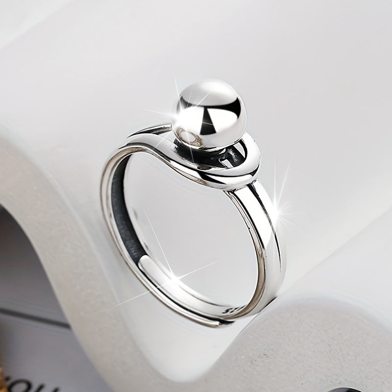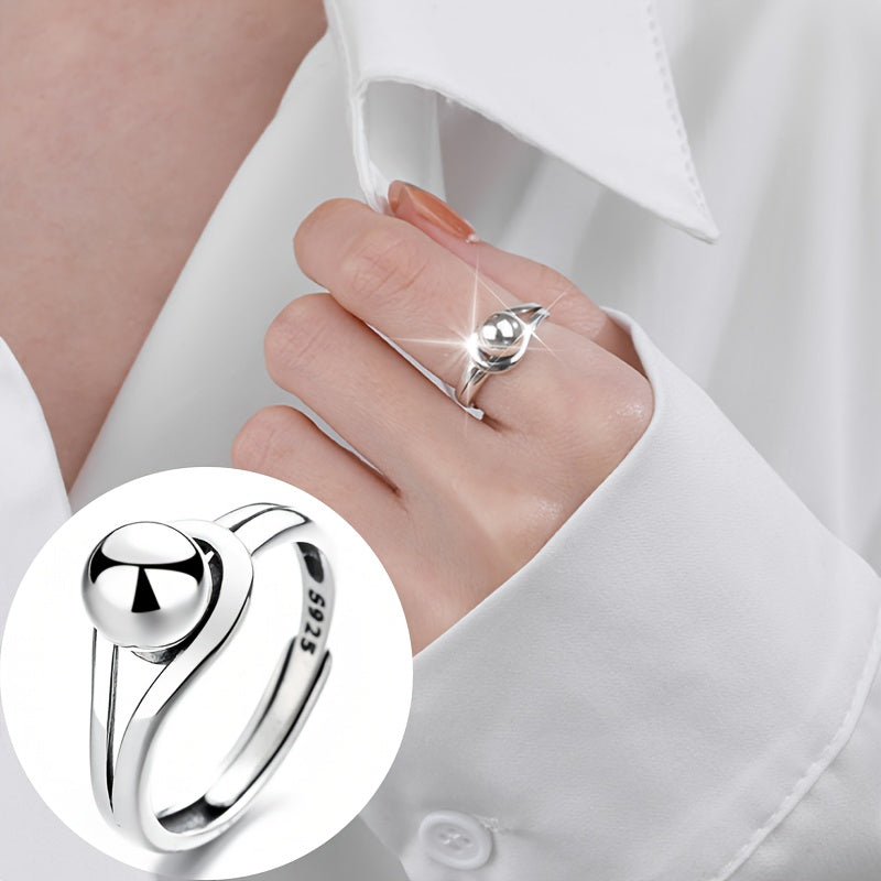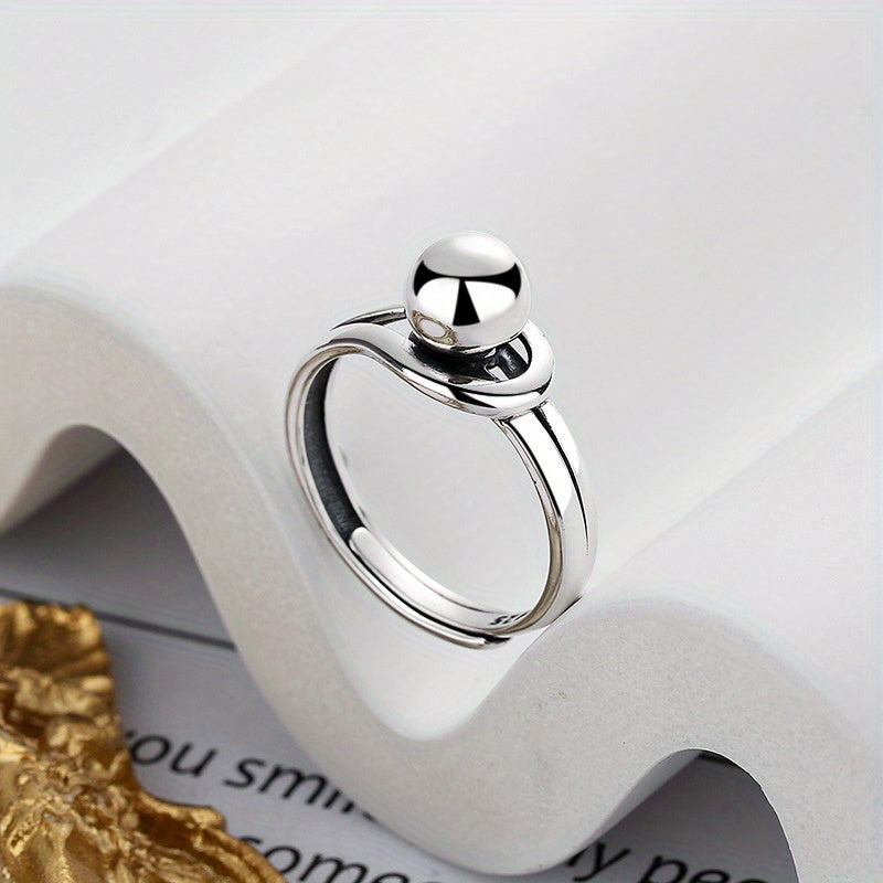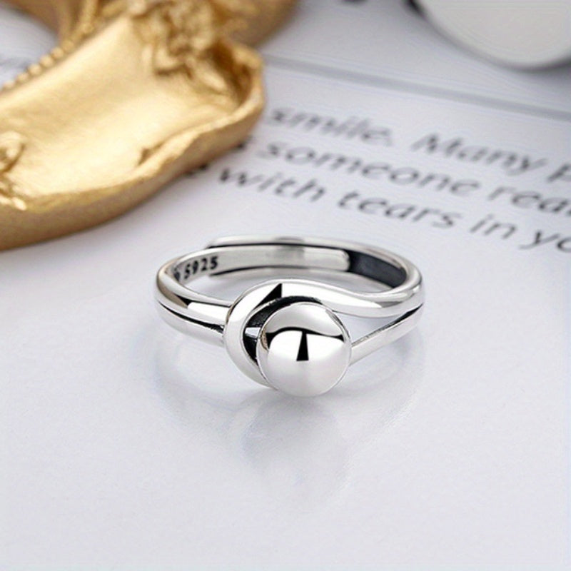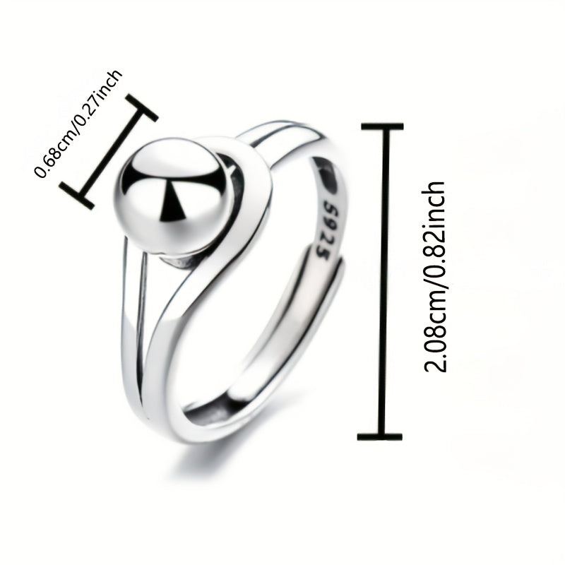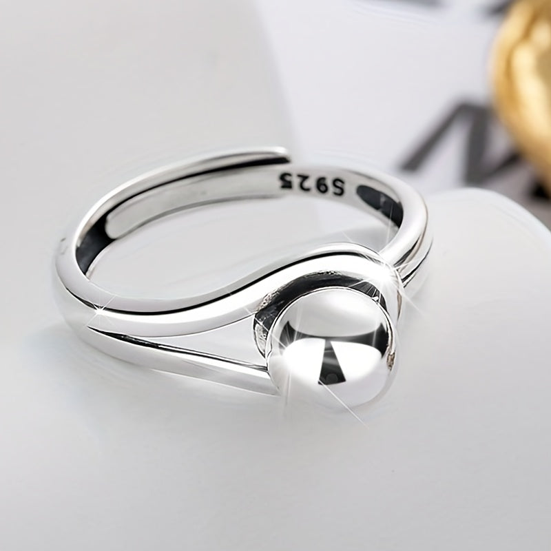 Elegant open ring made of 925 sterling silver with a geometric round ball design. Lightweight and distinctive piece.