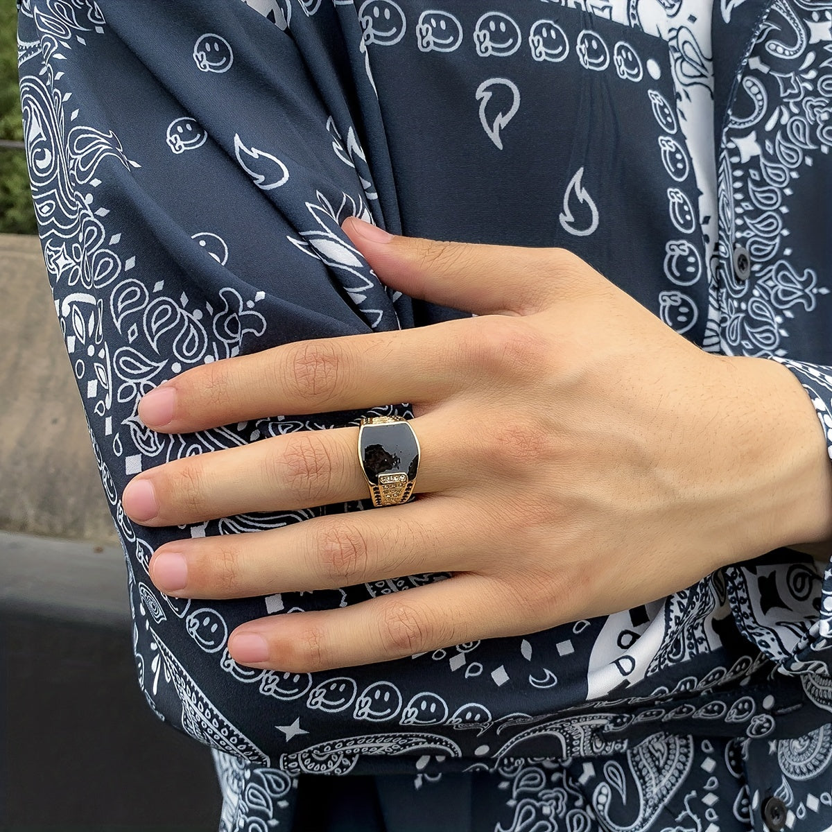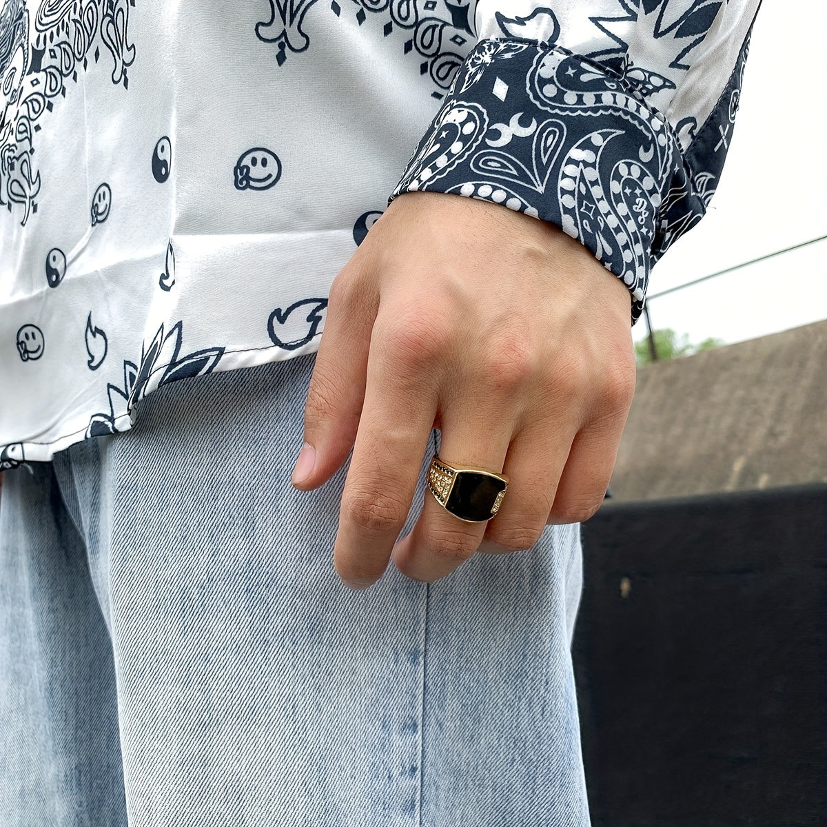 Add a touch of retro style with this geometric square ring featuring an artificial diamond. Perfect for any occasion.