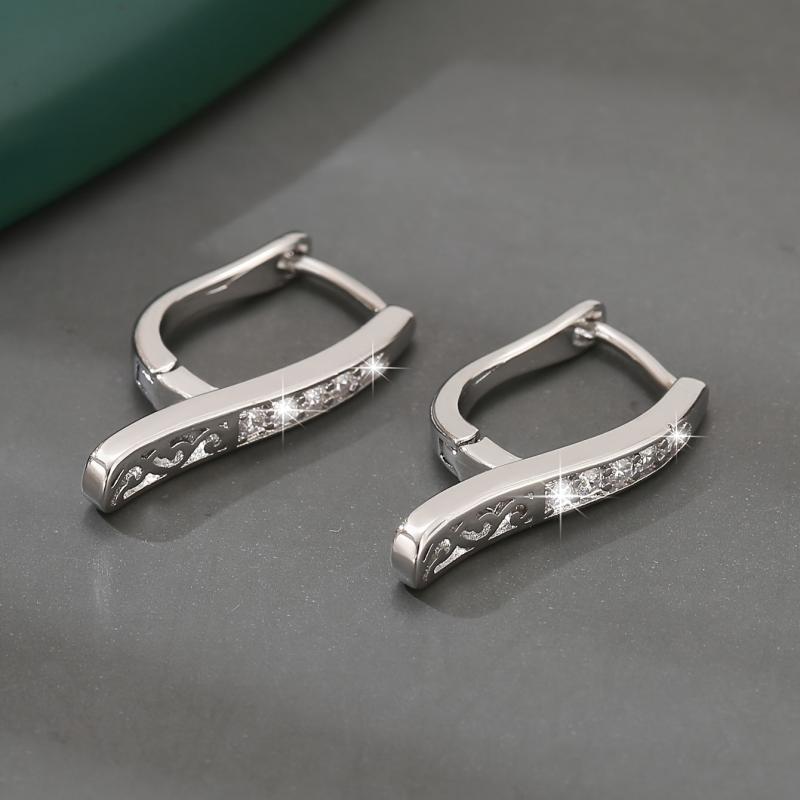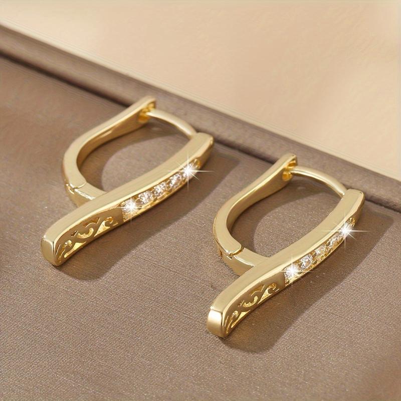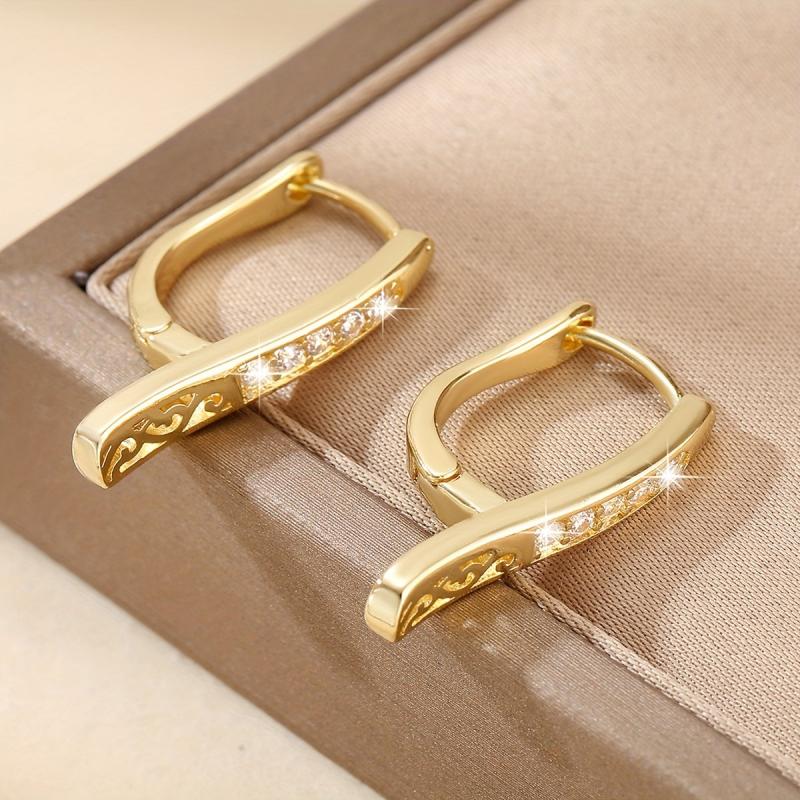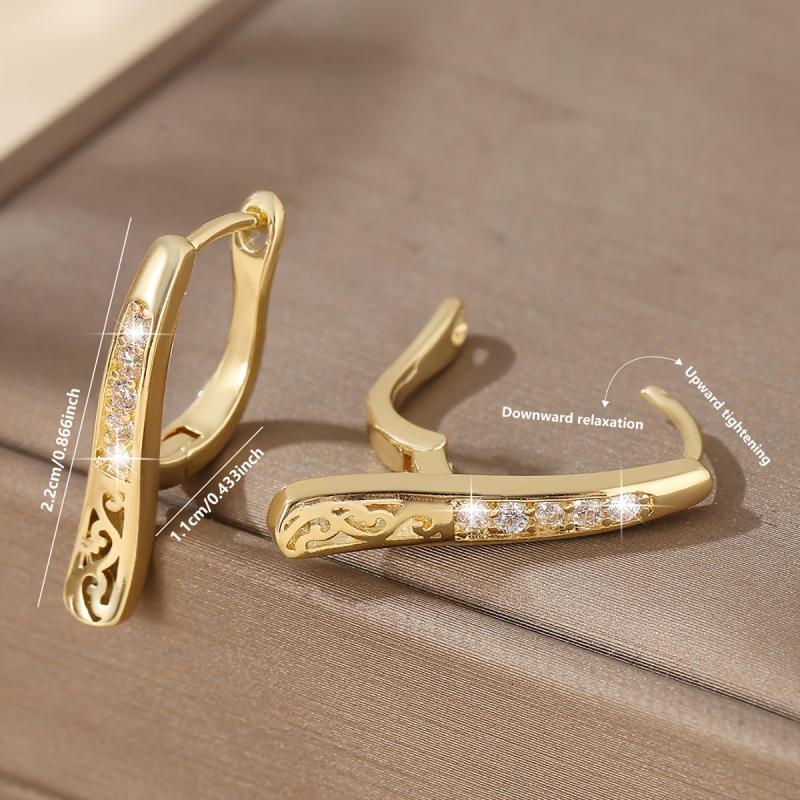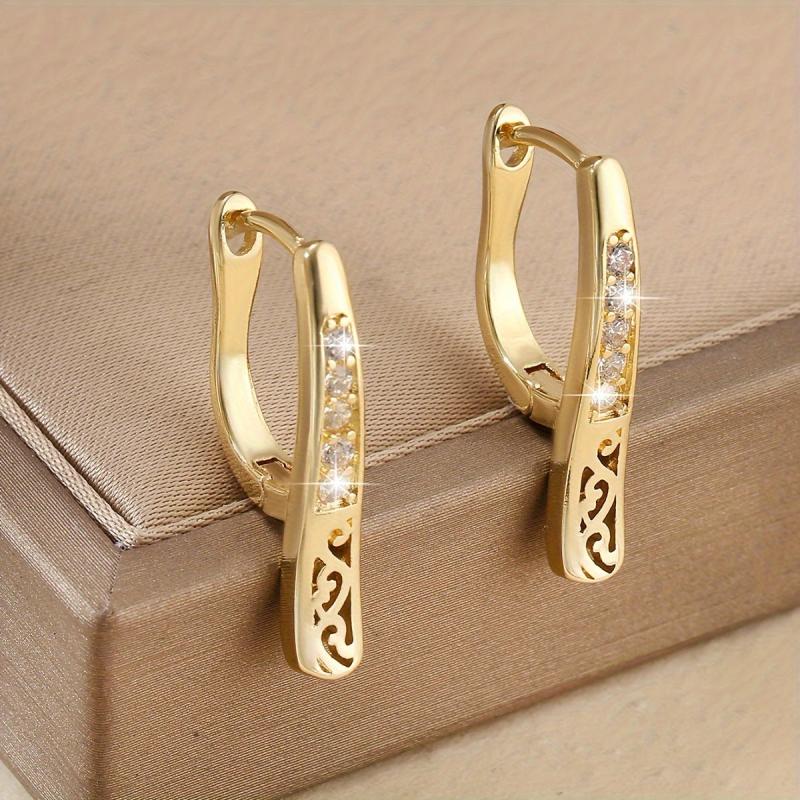 These stylish earrings feature a unique design with copper inlay and synthetic zirconia, making them perfect for a date night gift.