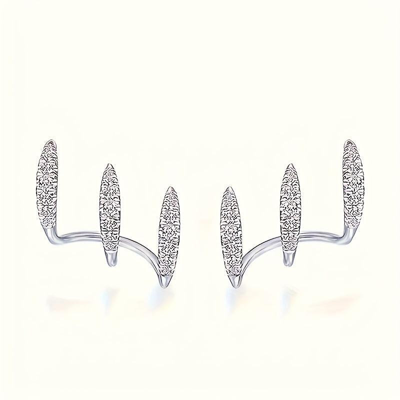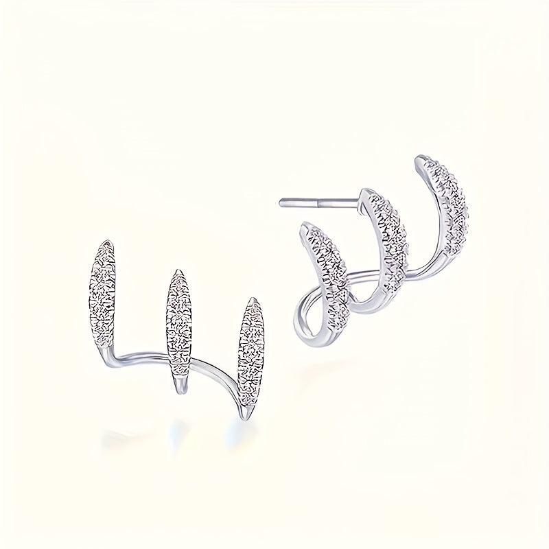 These minimalist stud earrings feature sparkling synthetic diamonds set in a geometric design. Made from golden plated copper, they are perfect for casual attire or as a stylish gift.