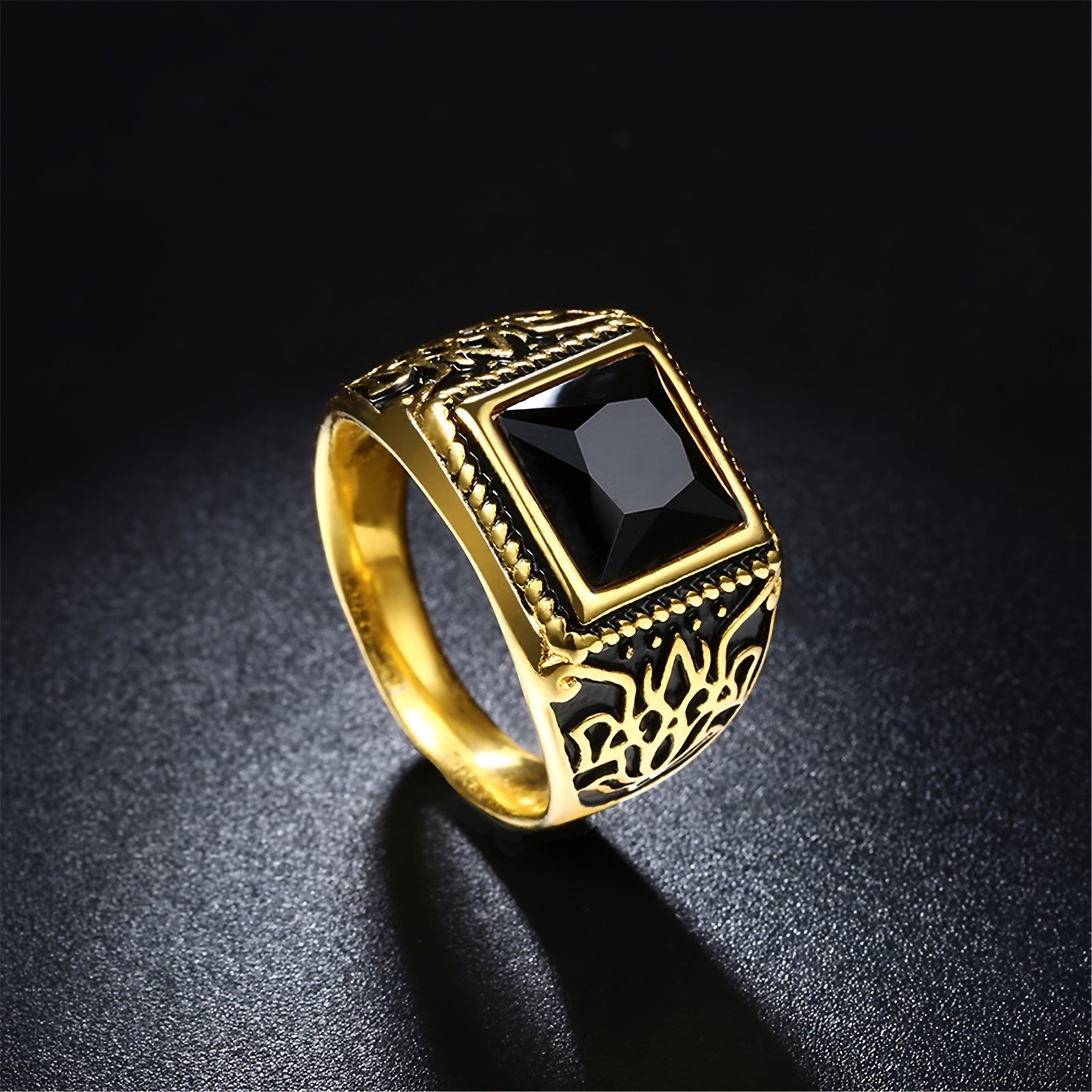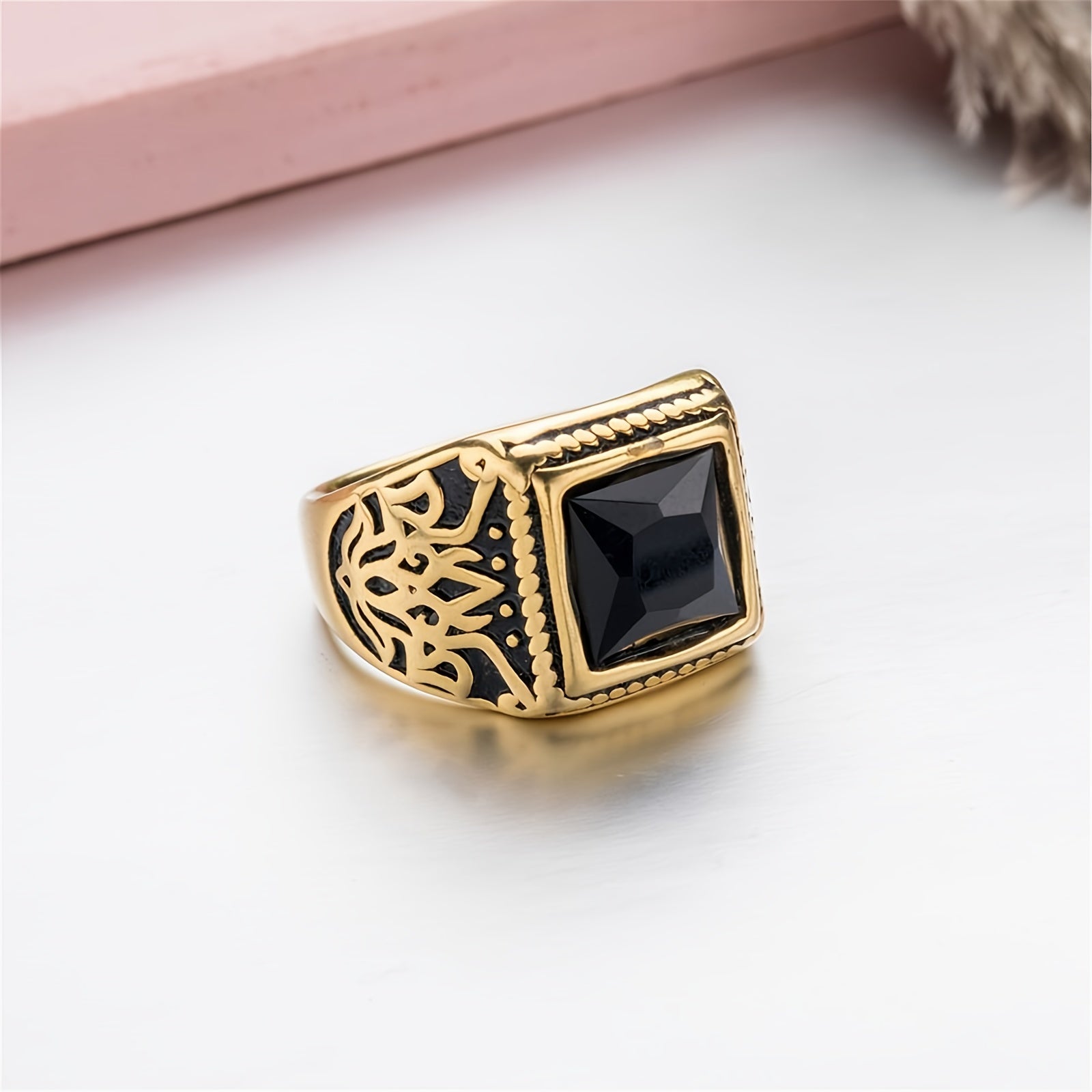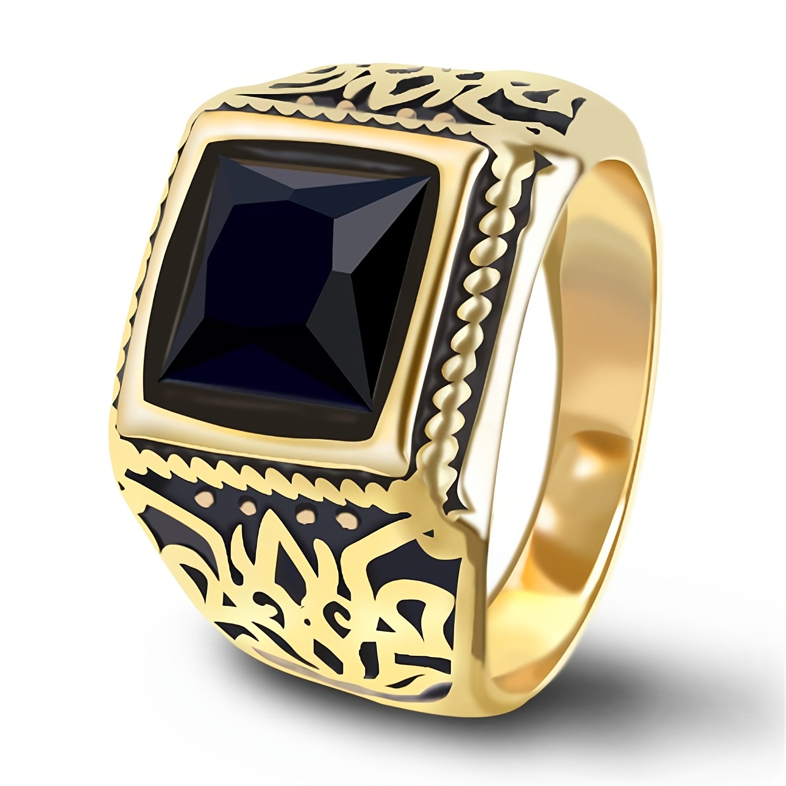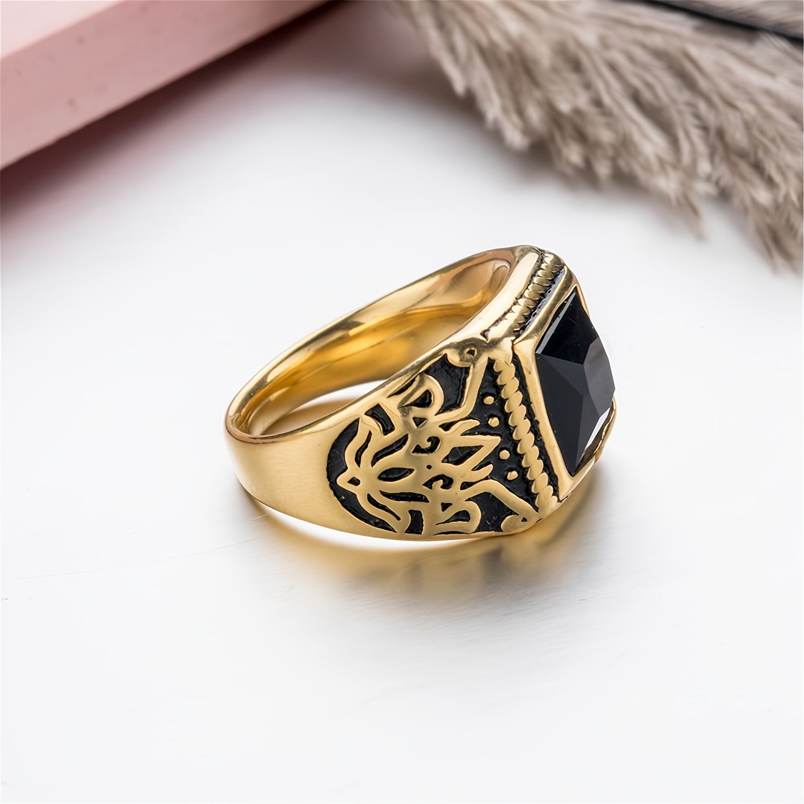 Add a touch of punk style to your look with this stainless steel men's ring. Featuring a geometric textured design and zircon stone, this ring is sure to make a statement.