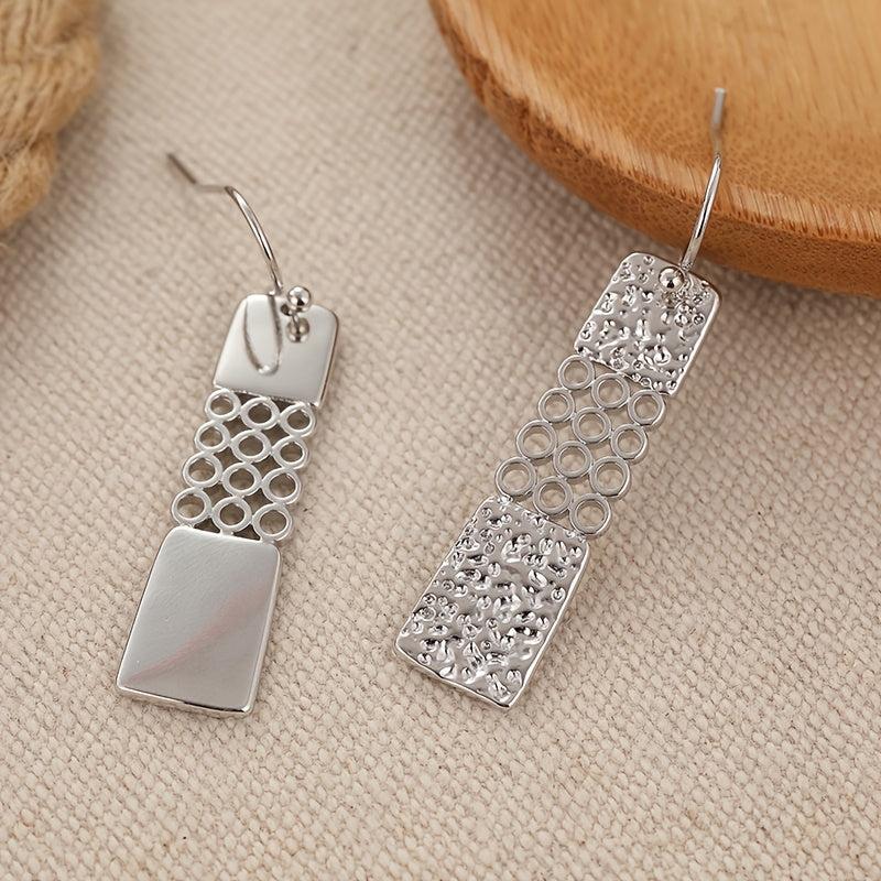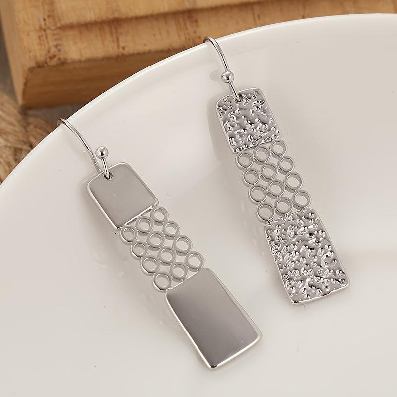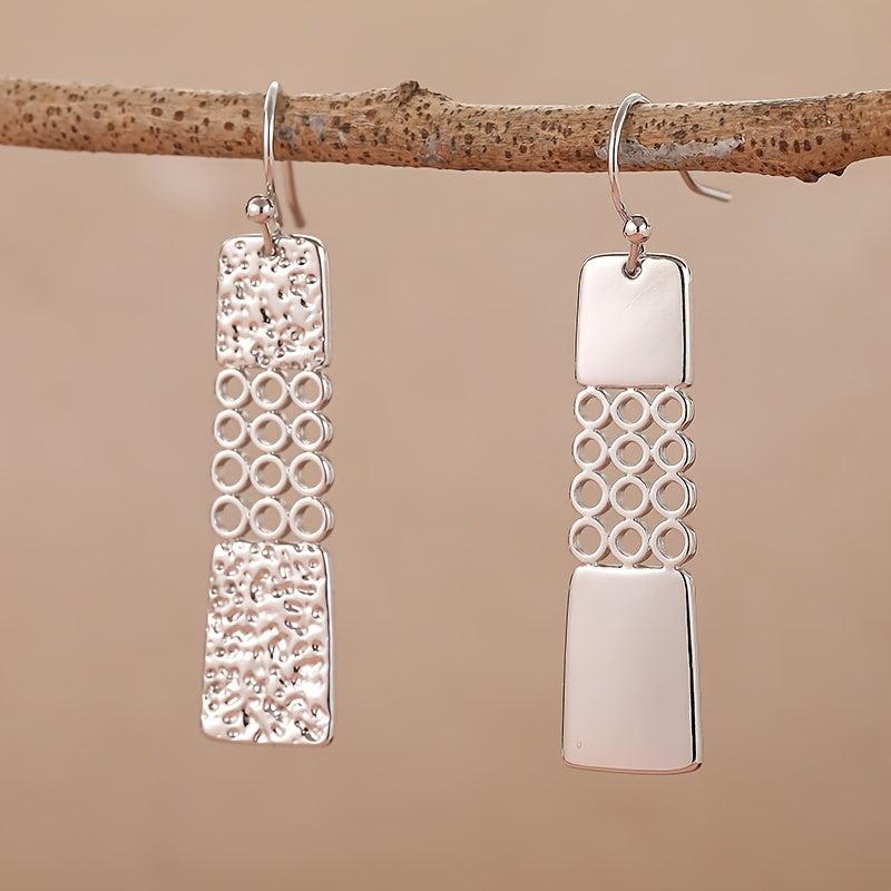 These stylish earrings feature an asymmetric geometric wave design with a textured surface. They are made of copper and have a vintage boho style, perfect for daily wear and special occasions.
