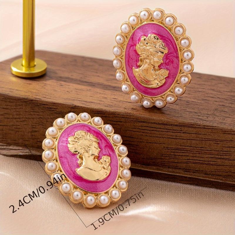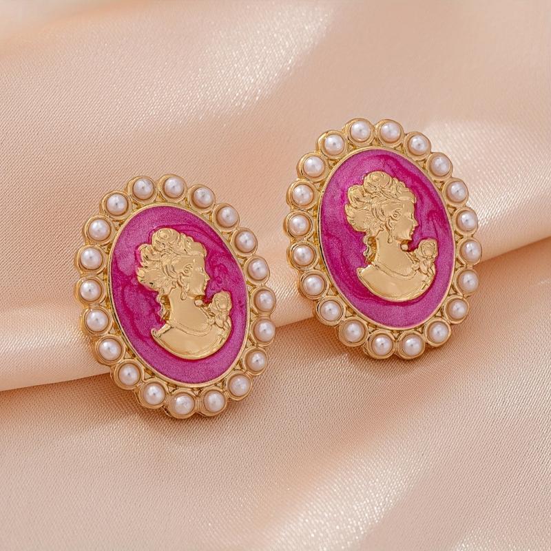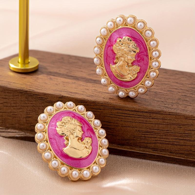 Add a touch of retro charm to your look with these geometric woman head stud earrings. The minimalist design features pink and golden accents, making them a versatile accessory for casual attire year-round.