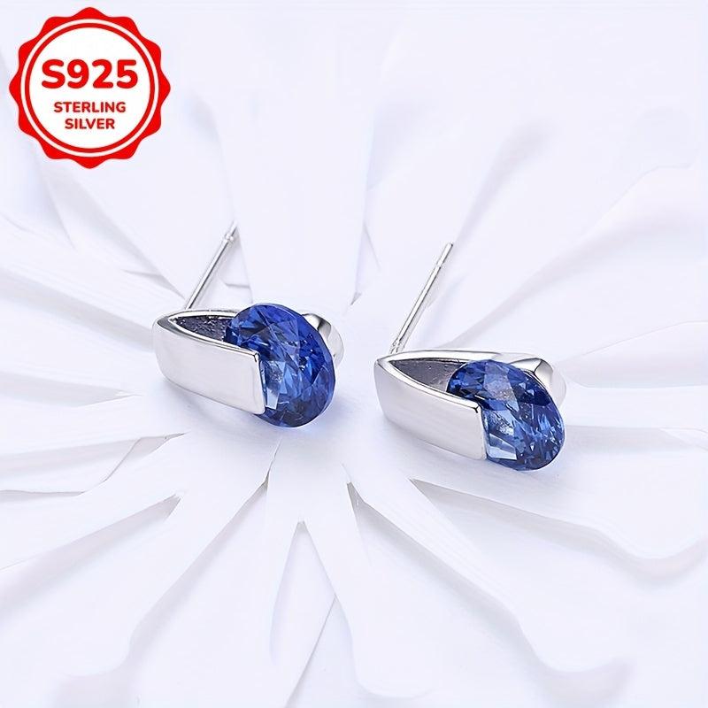 Add a touch of elegance to your outfit with these geometric zirconia stud earrings. Made with synthetic zirconia inlaid in 925 silvery material, these earrings are perfect for daily wear or as a gift for someone special.