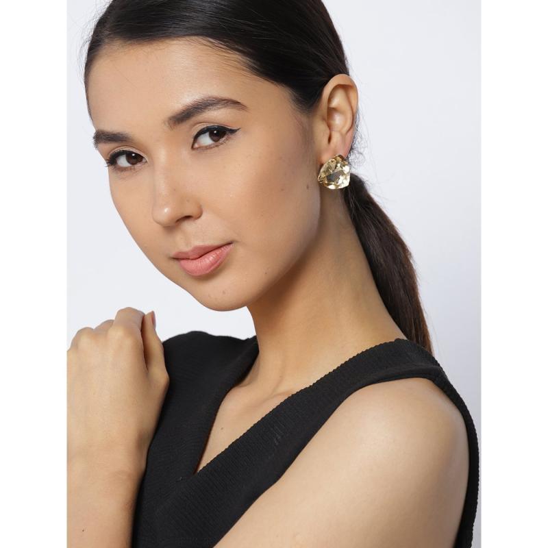Elevate your style with these contemporary stud earrings featuring sparkling beige crystals. Perfect for any occasion!