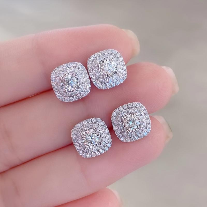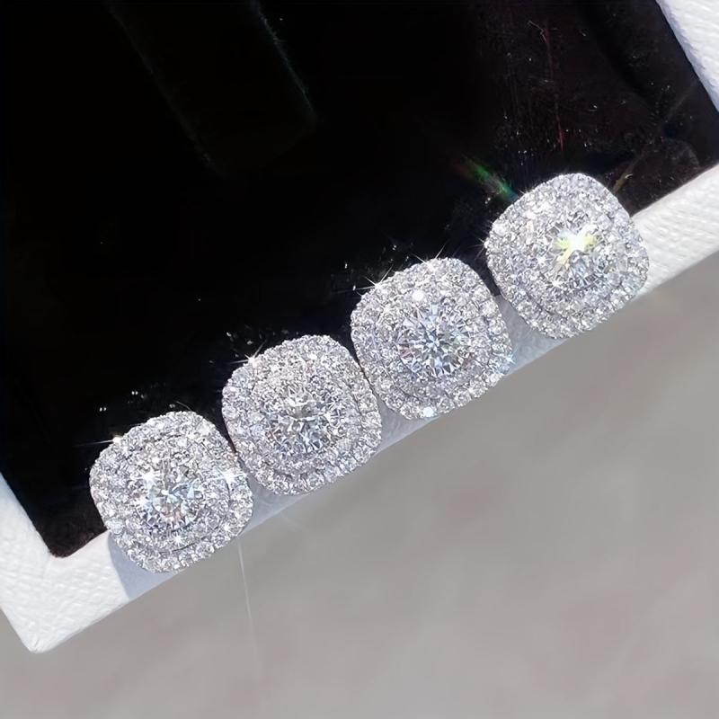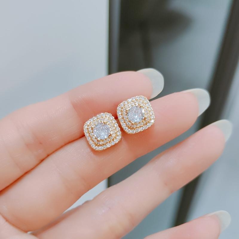 Add some glamour to your look with these square stud earrings featuring synthetic cubic zirconia. Made from copper, these earrings are ideal for anniversary or birthday gifts.