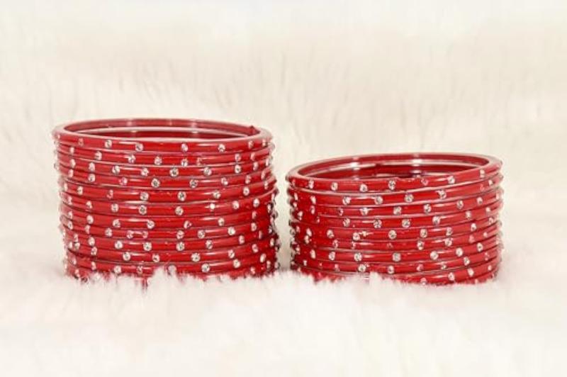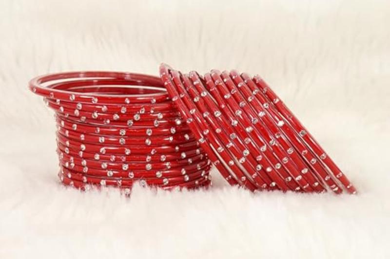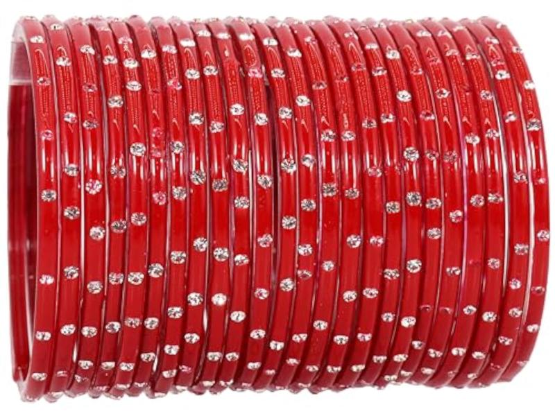 Elegant set of glass bangles with stone embellishments. Perfect for traditional occasions and festivals.