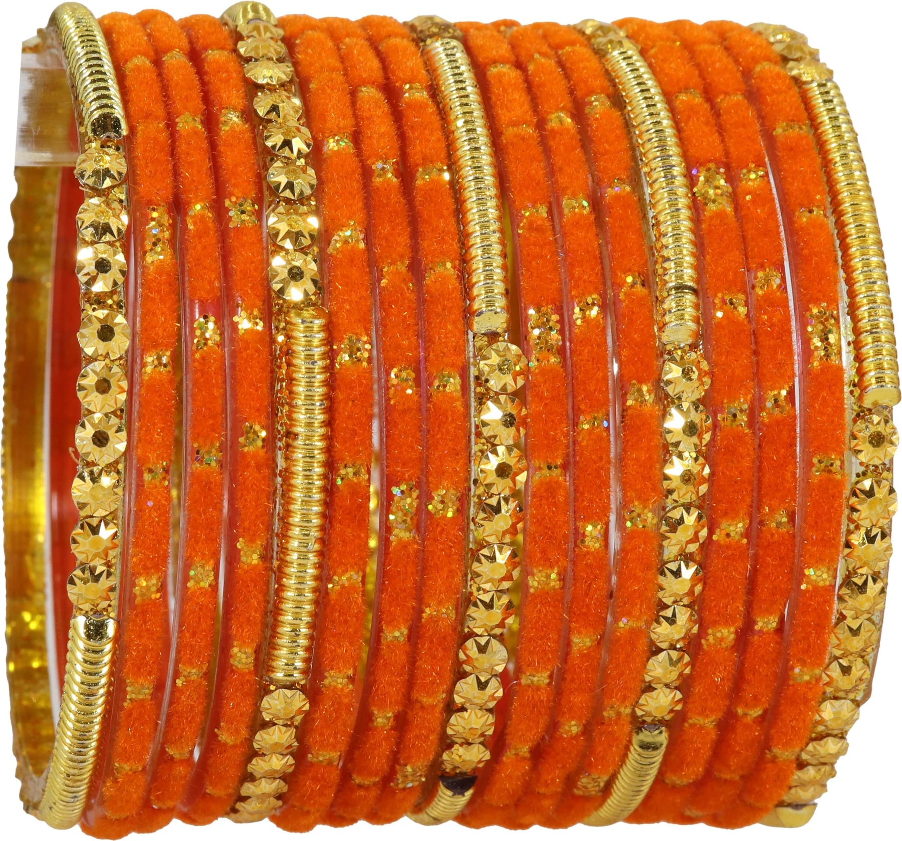 Add a touch of elegance with this fancy glass beads & polka dots velvet bangles set. Perfect for stylish chudi jewellery.