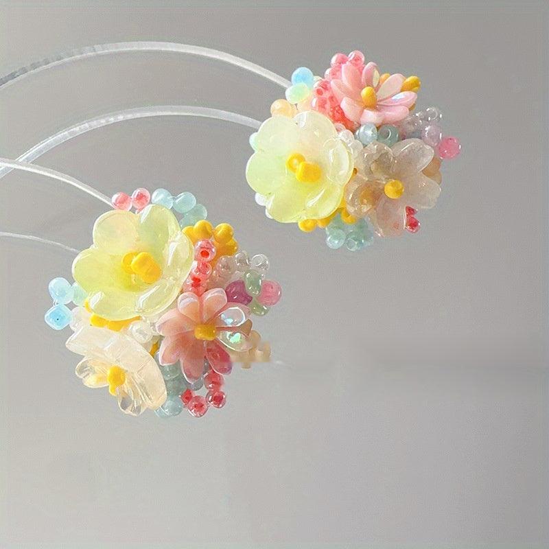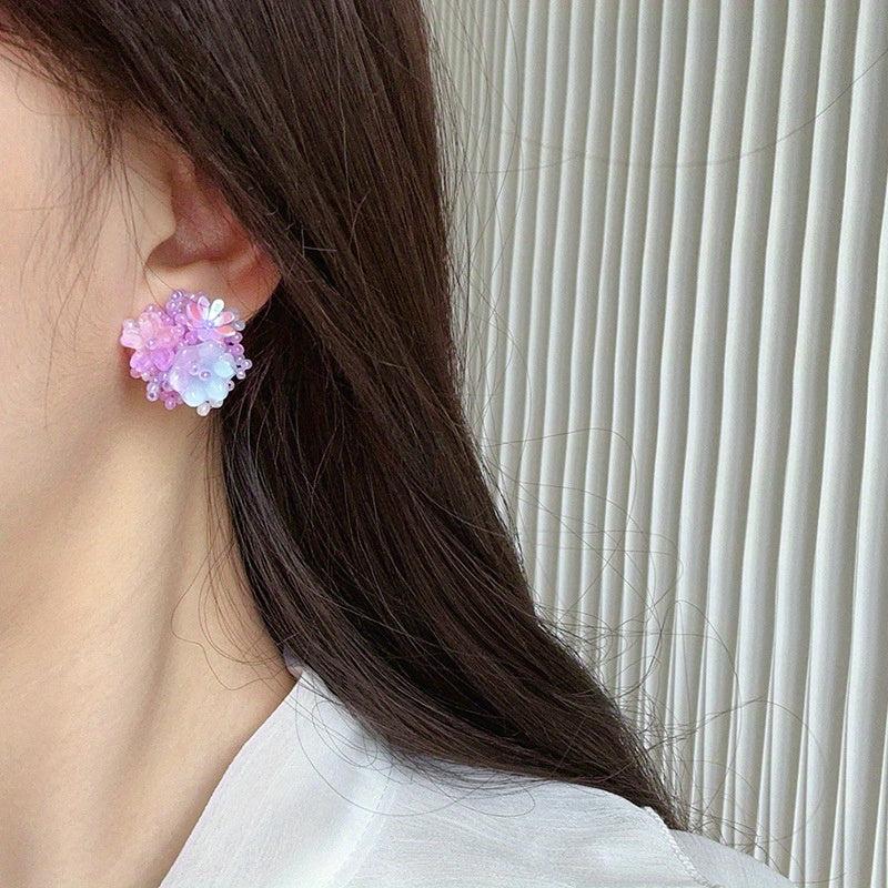 Pastoral style clip-on earrings with vibrant multicolor glass petals. Ideal for Valentine's Day or daily wear.