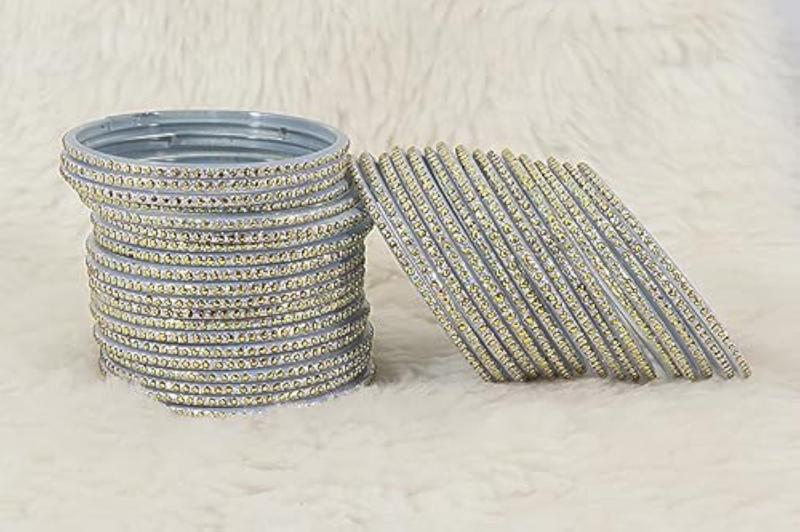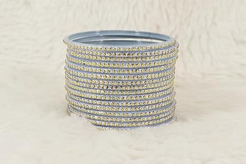 Add a touch of traditional elegance with this fancy bangles set featuring polka dots and glitter design. Perfect for special occasions or everyday wear.