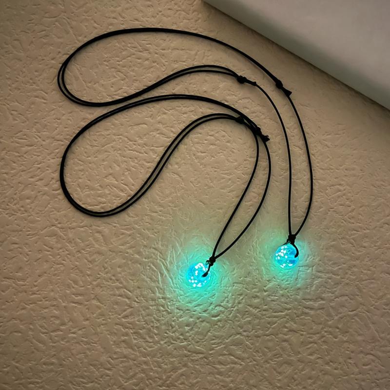 This 2pcs set features minimalist handwoven beaded necklaces that glow in the dark. Perfect as a gift for couples.