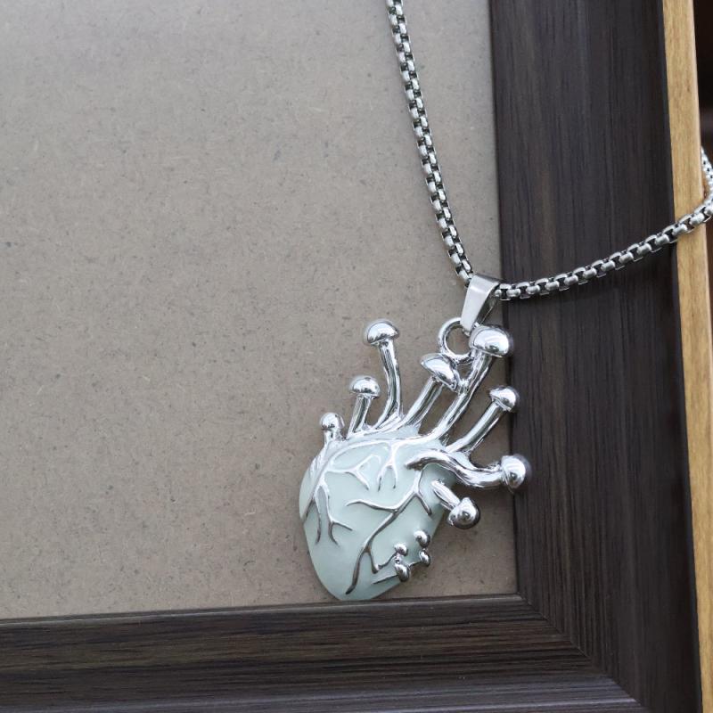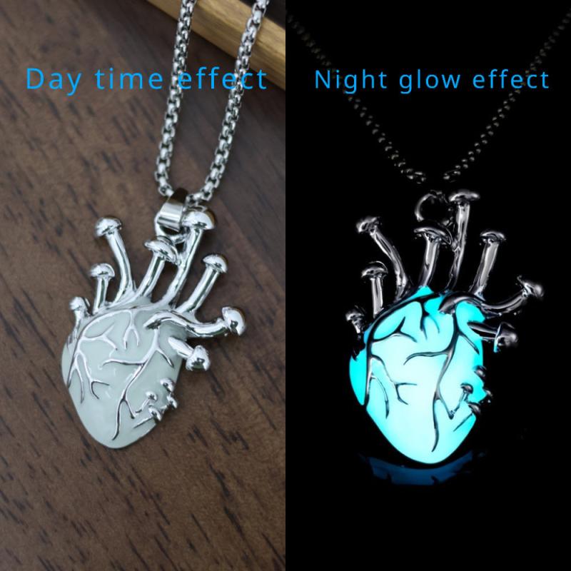 This stylish pendant necklace is perfect for Halloween and party outfits. It features a glow-in-the-dark heart design that adds a fun element to your look.